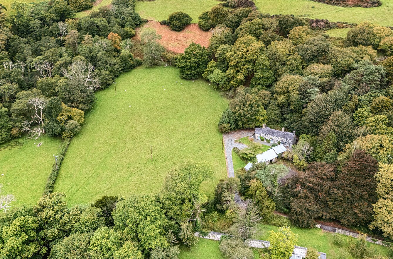 The property extends to over 70 acres, comprising approximately 47 acres of ancient woodland, 17 acres of pastureland, and beautifully maintained gardens, including an impressive three-acre front garden. Within the grounds are three further dwellings, including a four-bedroom farm house, with outbuildings, and two one bedroom cottages within the grounds. Each in need of renovation, yet perfect for additional living, guest accommodation or income potential.