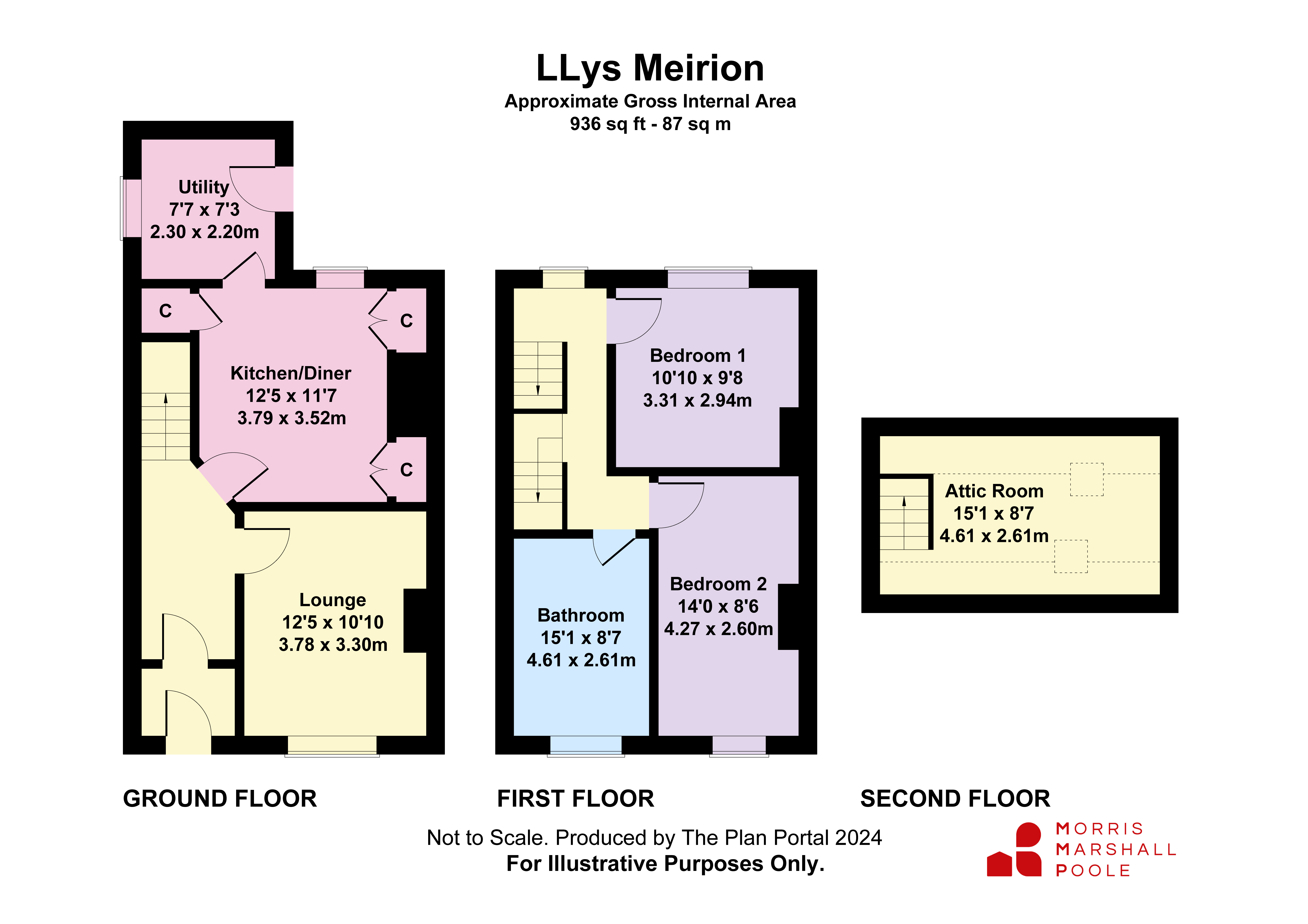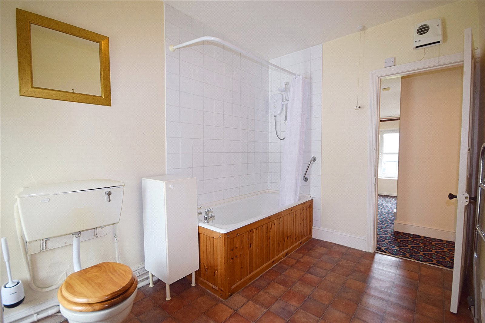 The first floor benefits from a good sized double bedroom (1), located to the rear of the home, complete with exposed floorboards and cast iron decorative fireplace. A second double bedroom (2), is located to the front of the home, further benefitting from exposed floorboards. The large family bathroom benefits from a shower over the bath with tiled surround, WC and wash basin, with plenty of scope to add a free standing shower unit. Landing with staircase overlooking the rear garden, and staircase to the second floor/ground floor. The attic room offers additional space, with two skylights to both aspects and sea views.