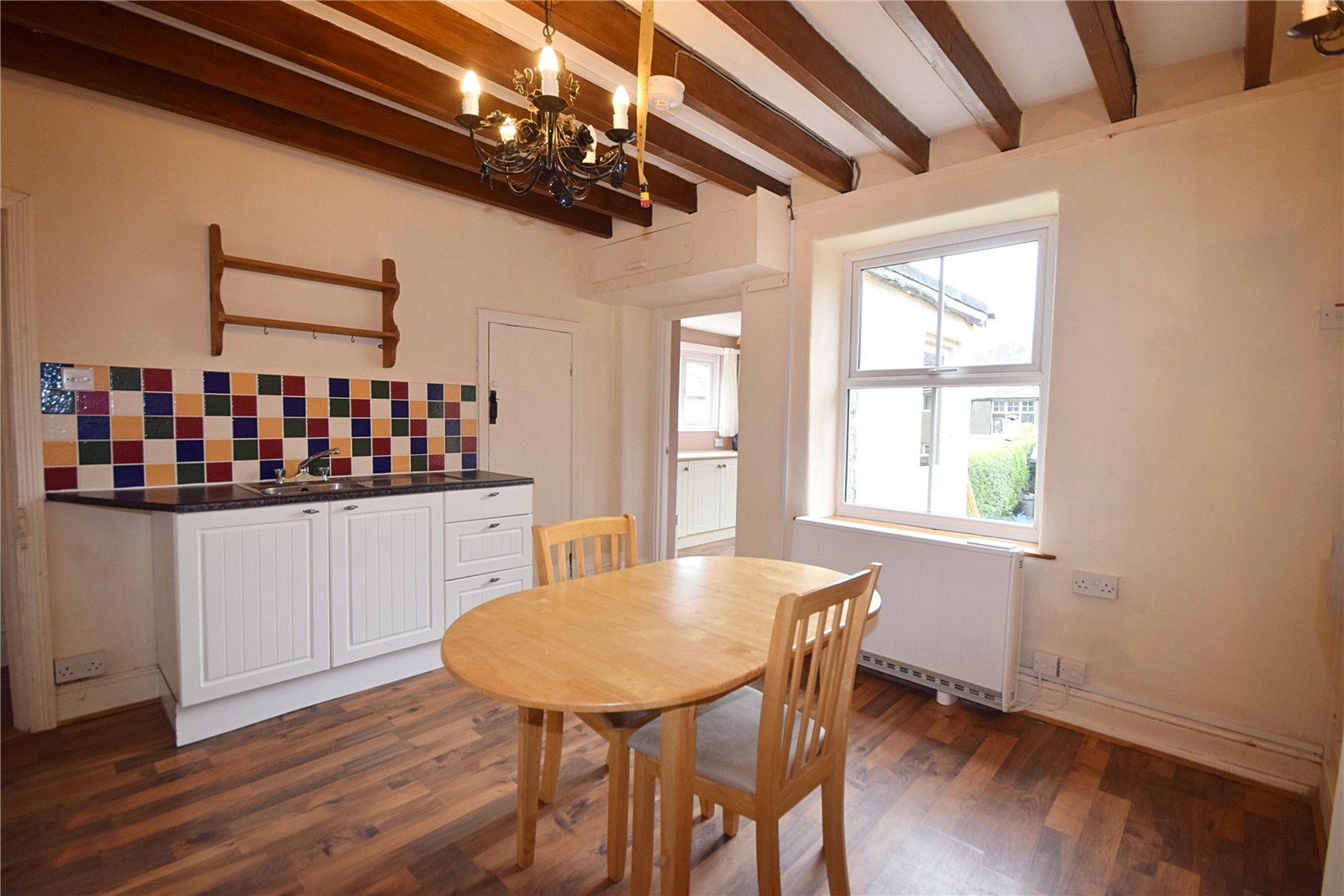 The property comprises of entrance porch, leading into the entrance hallway, with staircase to the first floor. The living room, located to the front of the home, centres around a wooden fireplace, with inset electric fire, complete with exposed floorboards. The kitchen/dining room, located to the rear of the home centres around a woodburning stove (decommissioned) set within a period fireplace with wooden lintel. Two storage cupboards are located either side of the fireplace. The kitchen offers fitted base units, with tiled splashbacks and laminate worktops. A recess is provided for a freestanding electric oven, and undercounter fridge/freezer. Understairs pantry storage cupboard, with plumbing for a washing machine. Boot Room/Utility Room is located to the rear of the property, with further base units and undercounter recess.