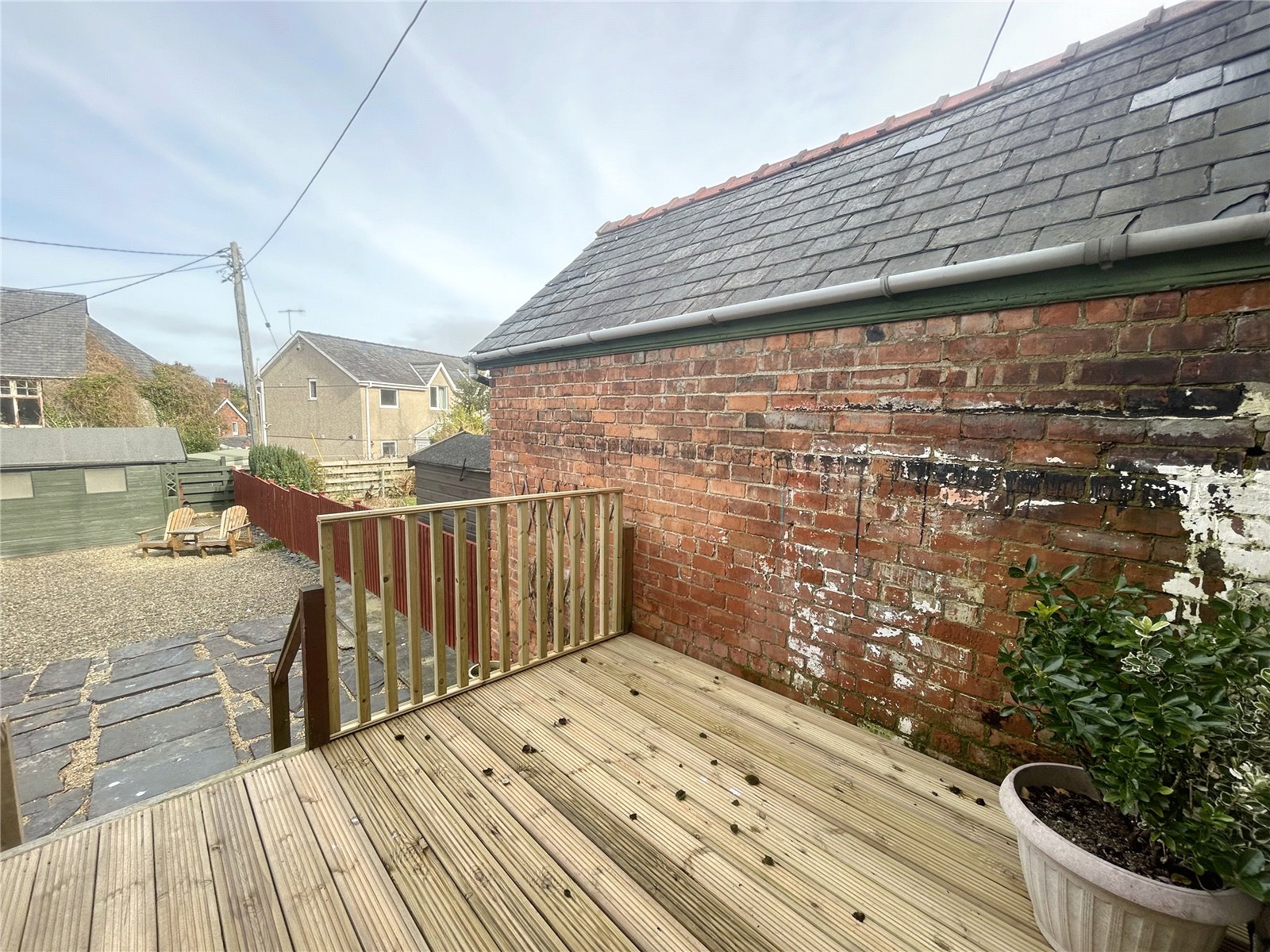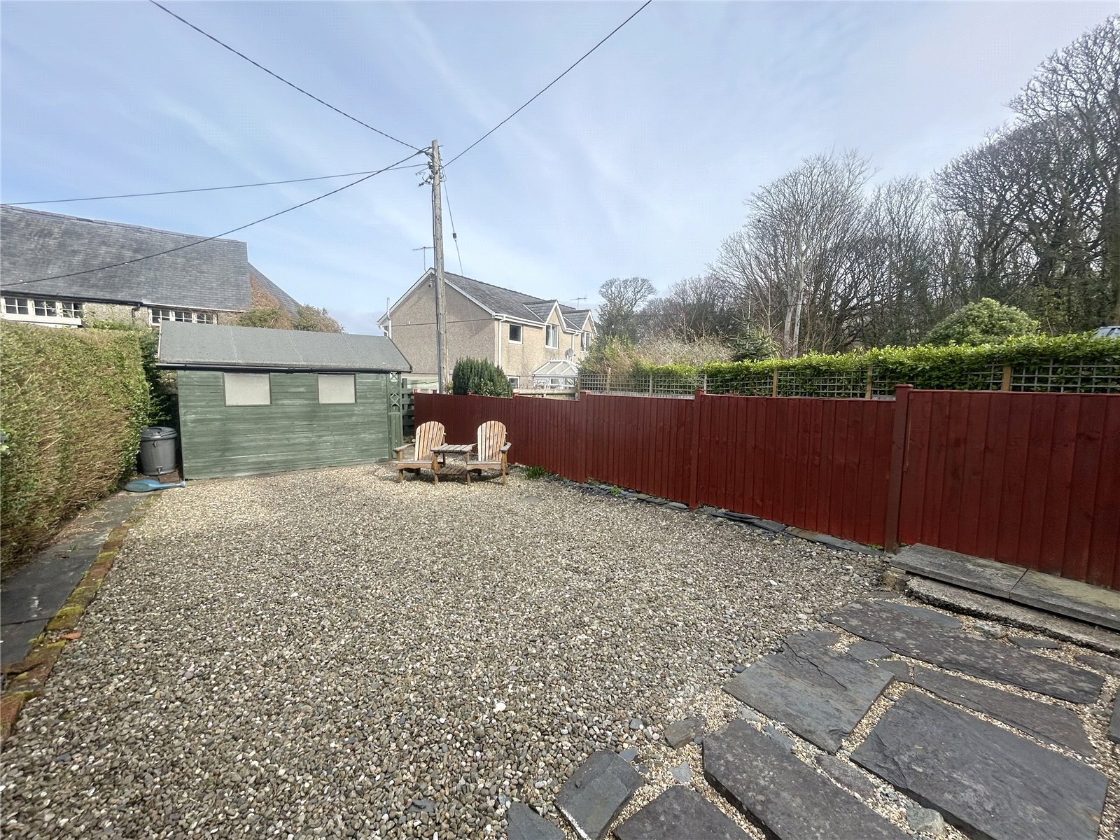 The property benefits from an enclosed front garden, with low lying brick wall and seating area. The rear of the property comprises of decking adjacent to the home, with steps down to a flagstone patio. Onward decorative stone, with potential to convert into a level lawn. Large garden shed located to the rear boundary. Llys Meirion benefits from a right of way across the adjacent driveway to access the front elevation.