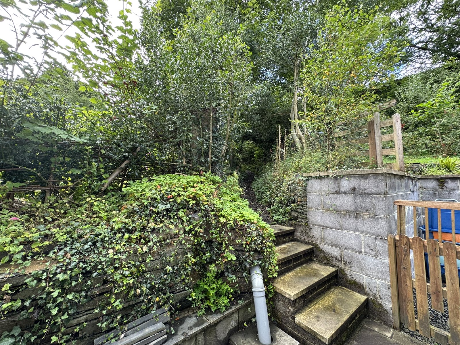 To the front, a wide driveway providing off road parking for 2 vehicles. Steps up to the side giving access to the property and gardens. To the side, a generous garden laid mainly to lawn with feature stone walls and floral borders. A productive vegetable garden lies beyond and is bordered by mature trees and shrubs, offering a private outdoor space with views across the surrounding countryside. A stone built storage shed is accessible via the roadside. To the rear, a small path and steps up to a further terraced lawn area. A Public Footpath passess through the property, between the cottage and the larger garden and follows the boundary line. At present this is little used.