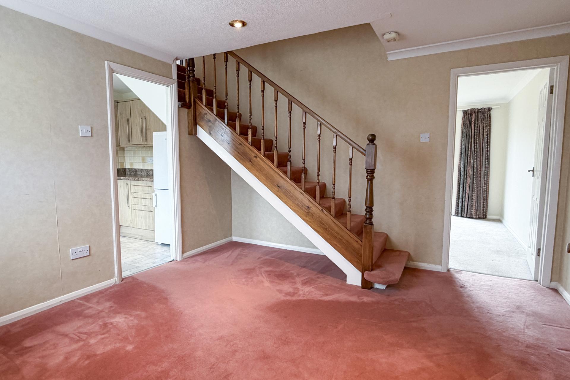 Upon entering, the hallway provides access to a useful storage cupboard before opening into the dining room, a bright and versatile space at the front of the house with stairs rising to the first floor. The kitchen is well-appointed with neutral wall and base units alongside space for appliances.