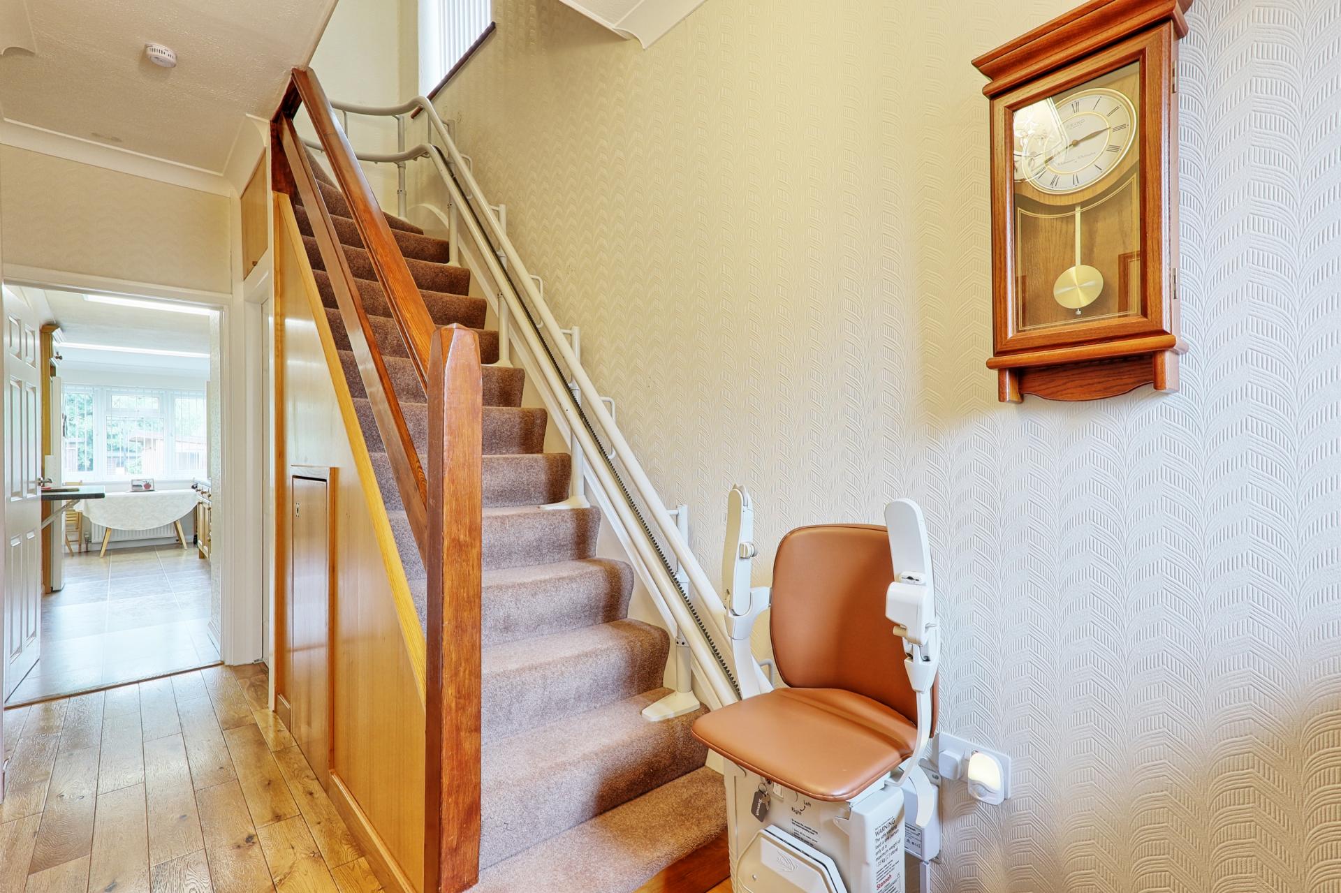 ENTRANCE HALLWAY Solid wood flooring. Radiator. Textured ceiling with coving. Under stairs storage housing gas, electric meters and fuse board. Carpeted stairs to first floor. Doors giving access through to.