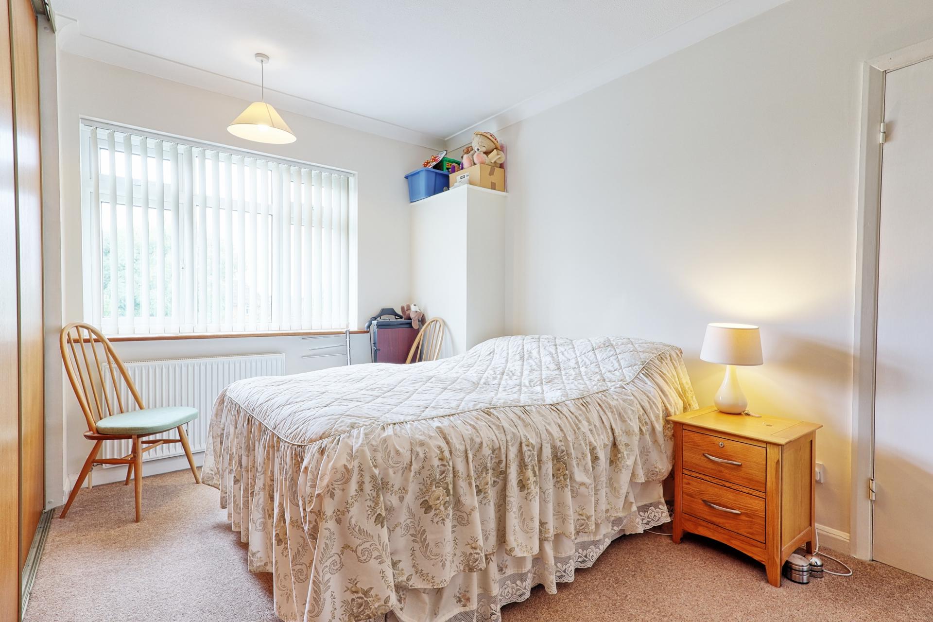 BEDROOM TWO 12' 9" x 9' 8" (3.89m x 2.95m) Double glazed window to the rear. Radiator. Carpet. Textured ceiling with coving. Fitted wardrobes to one wall with sliding doors.