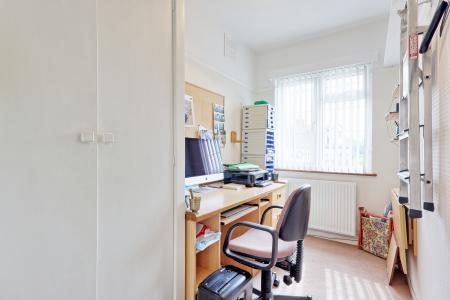 BEDROOM THREE 9' 9" x 5' 6" (2.97m x 1.68m) Double glazed leadlight window to the front. Radiator. Carpet. Textured ceiling. Picture rail.