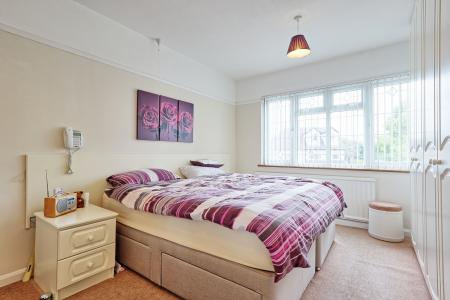 BEDROOM ONE 14' 8" x 10' 7" (4.47m x 3.23m) Double glazed leadlight windows to the front. Radiator. Carpet. Textured ceiling. Picture rail. Fitted wardrobes to one wall.