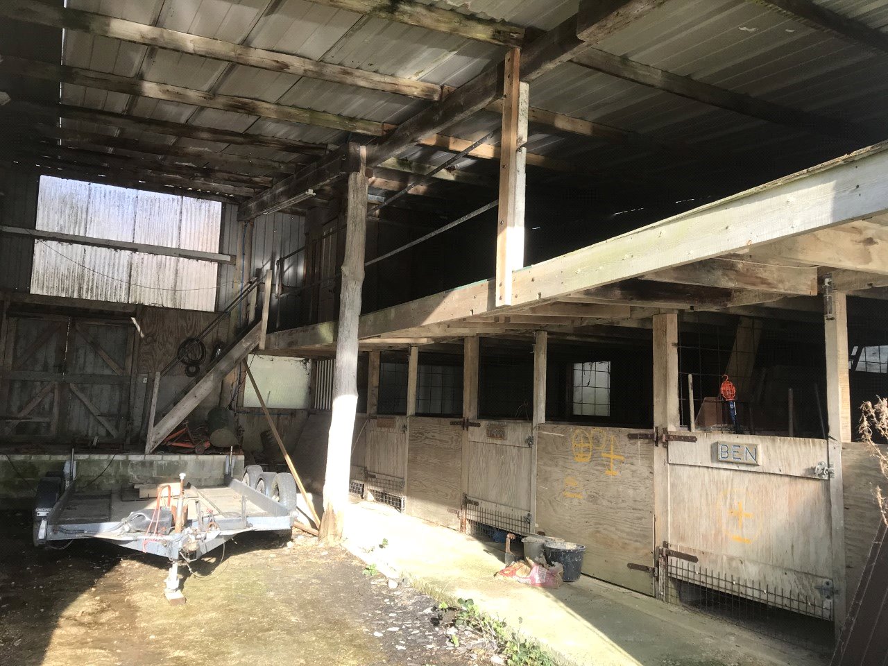 STABLING AND BARN STORAGE AREA: This has two large entrances into and is presently used for storing vehicles, with a number of stables at the far end with a further storage level above.
