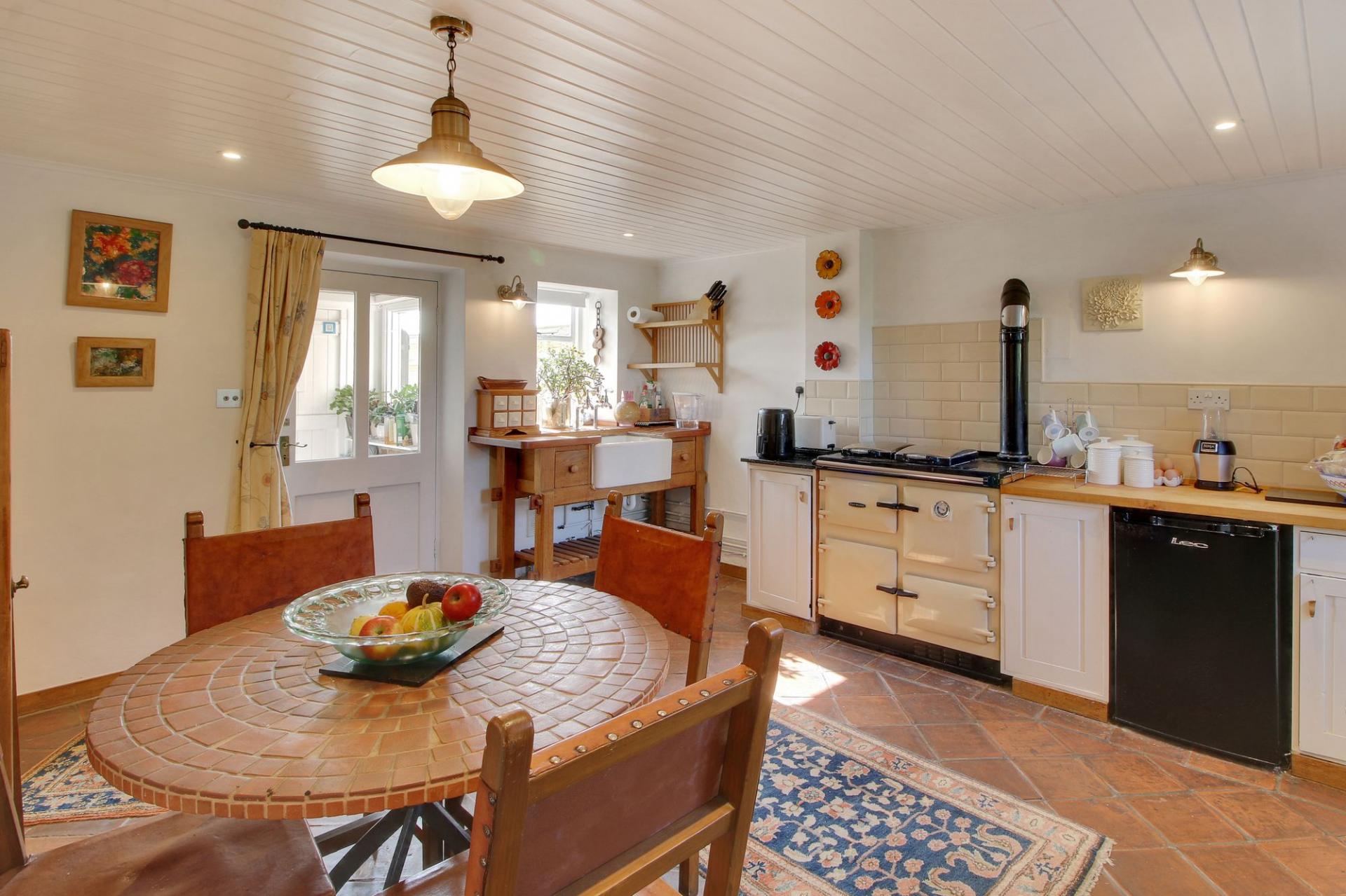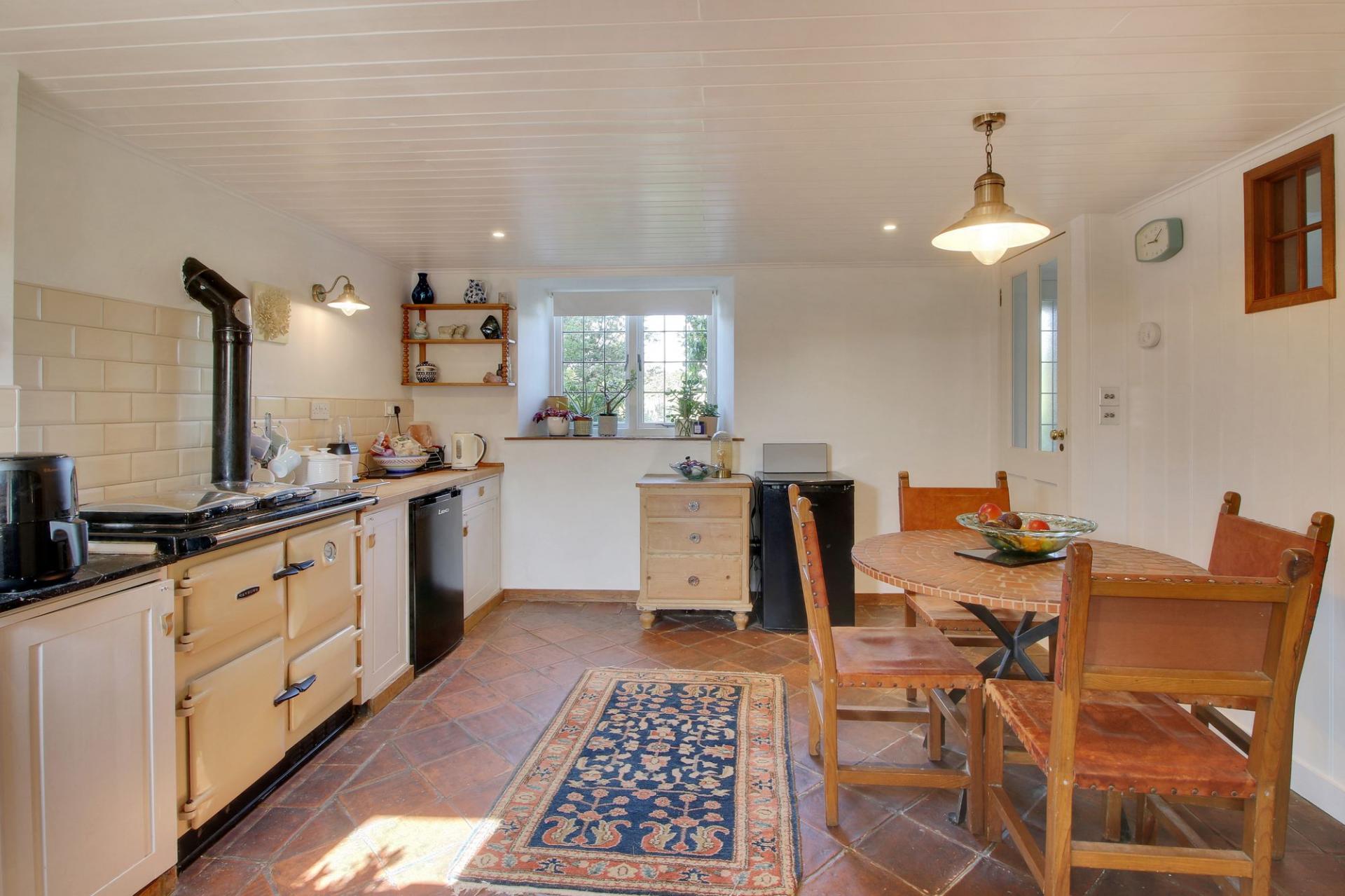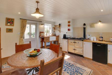 The property benefits from, in brief, on the ground floor; A useful entrance porch leading to a pretty and spacious country kitchen diner with an oil-fired Rayburn, a utility room and access to the rear garden. The dual aspect living room has central heating radiators and houses a log burning stove.