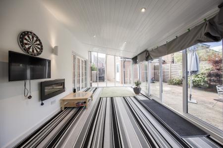 SITTING ROOM: Double glazed window and double glazed doors opening into the conservatory. Double doors giving access to the hallway. Radiator.