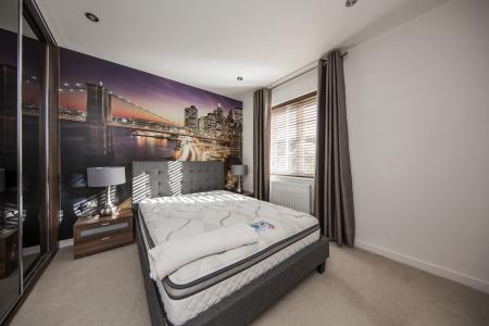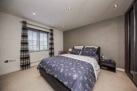MASTER BEDROOM: Double glazed windows. Fitted double wardrobe. Radiator. Door to: