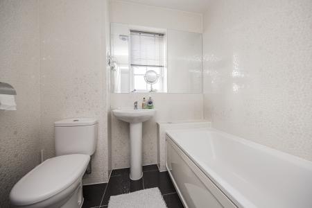FAMILY BATHROOM: Bath with mixer tap and shower attachment over. Wash basin. WC. Heated towel rail. Shaver point. Tiled floor.