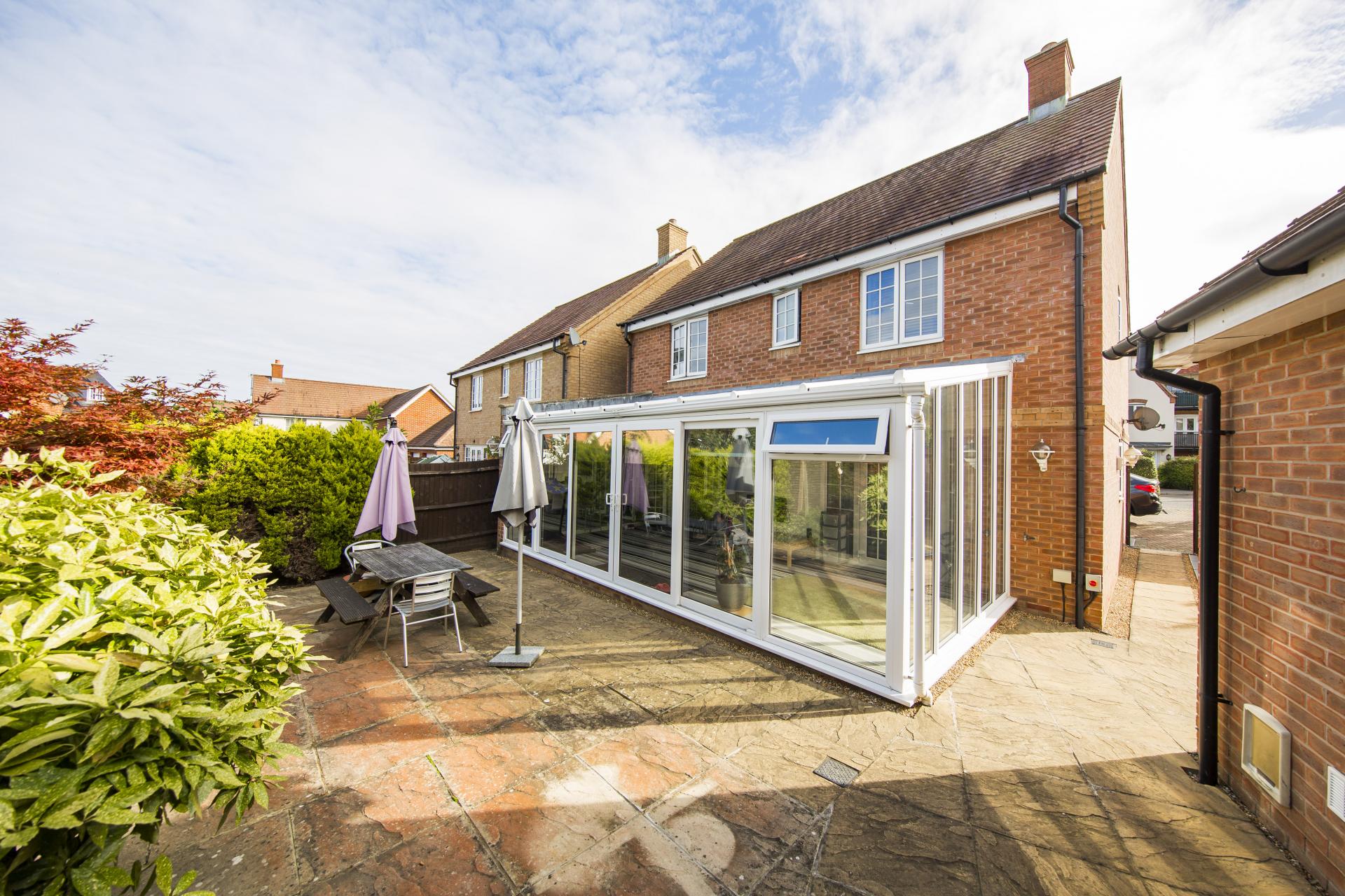 A spacious four bedroom detached family home. Accommodation features four bedrooms with two en-suites and a family bathroom, two reception rooms, modern fitted kitchen and large conservatory, study and downstairs cloakroom. The REAR garden is low maintenance and includes a heated spa swimming pool. To the FRONT of the property a driveway provides parking for two cars and gives access to a good size single garage. NO ONWARD CHAIN.