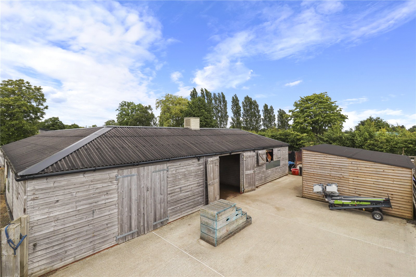 The Equestrian facilities are absolutely wonderful with 6 high specification bespoke loose boxes, a fowling box, a tack room and a feed room, with the added benefit of a washdown section and covered area for grooming.