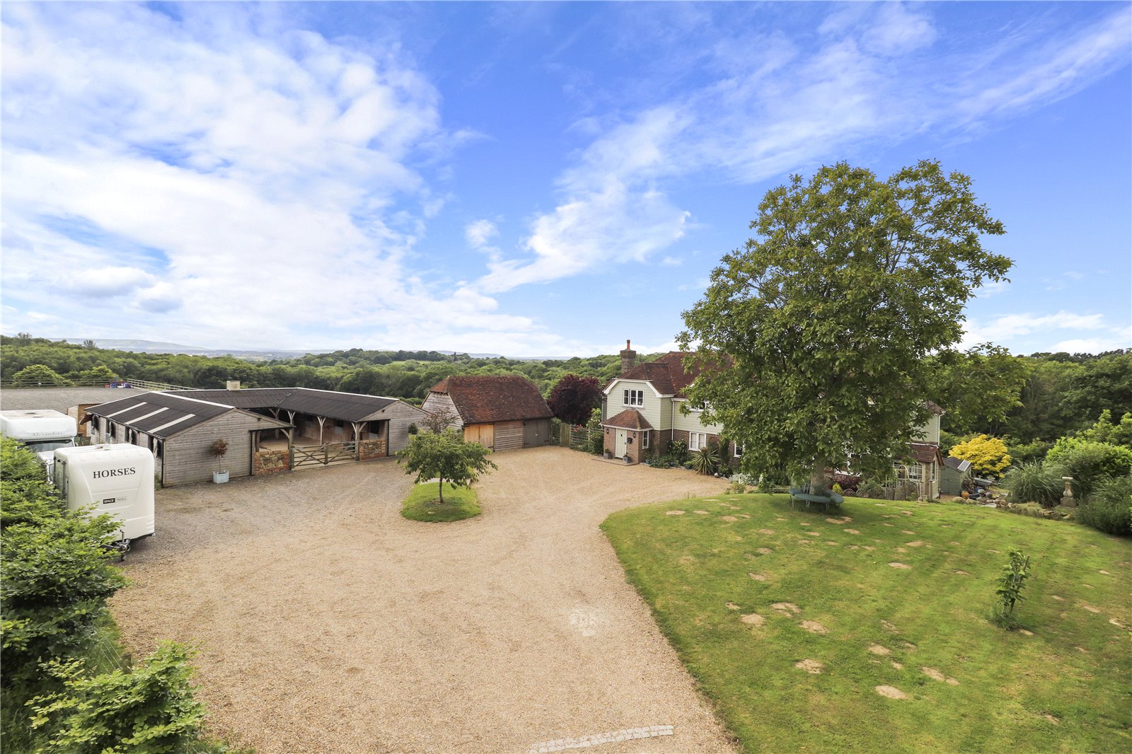 DESCRIPTION: A perfectly located and very impressive New England style detached family country residence with 4 to 6 bedrooms to the main farmhouse and set within approximately 12 acres with bespoke high specification equestrian facilities, a detached heritage style building with guest flat above and probably some of the finest views in Sussex.