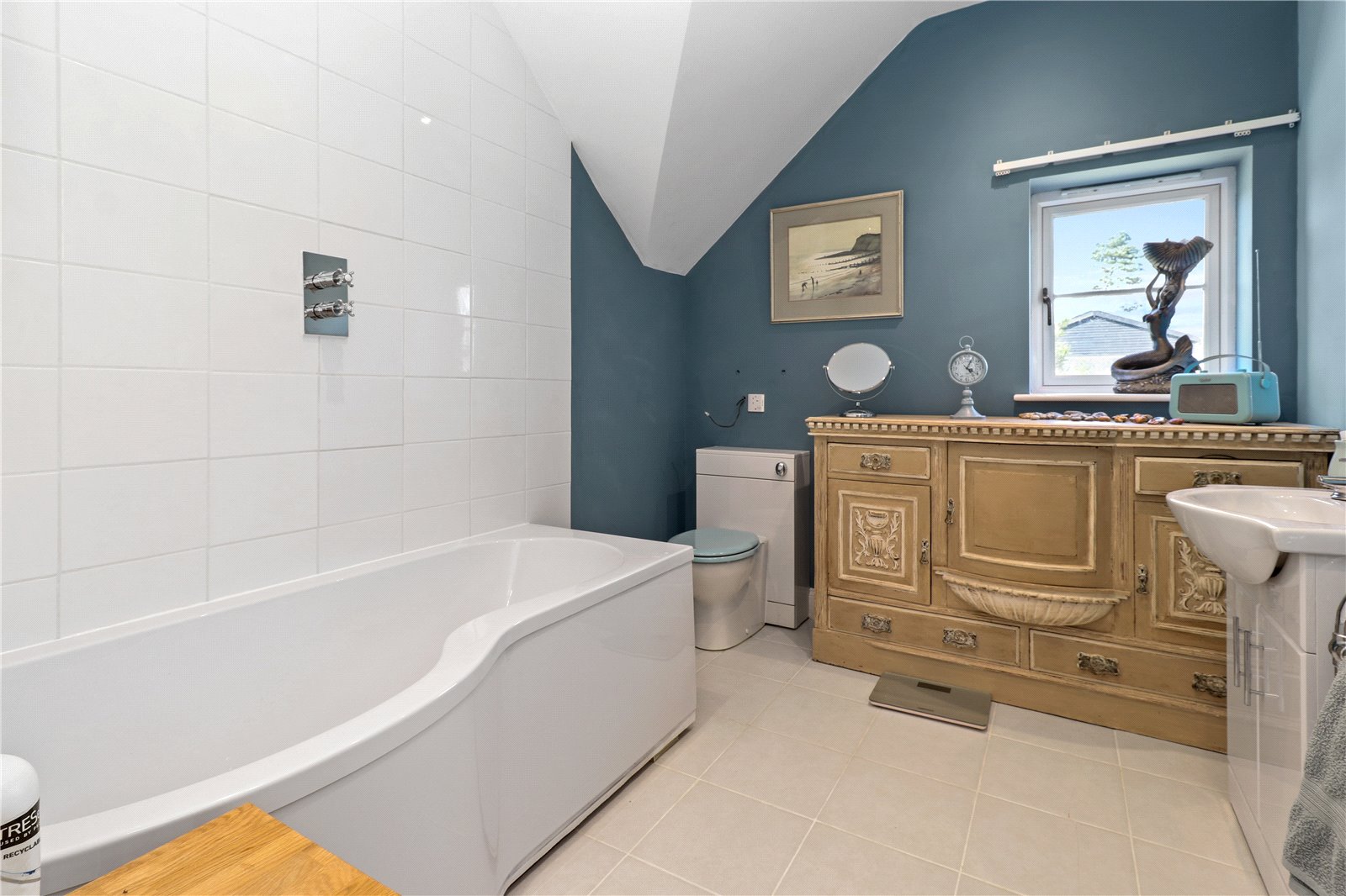 ANCILLARY ACCOMODATION BATHROOM / SHOWER ROOM: Comprising of a large fitted bath with chrome taps and chrome shower, tiled walls, W.C., tiled floor, heated chrome towel rail, wash basin with cupboard under and chrome taps, double glazed window with views.