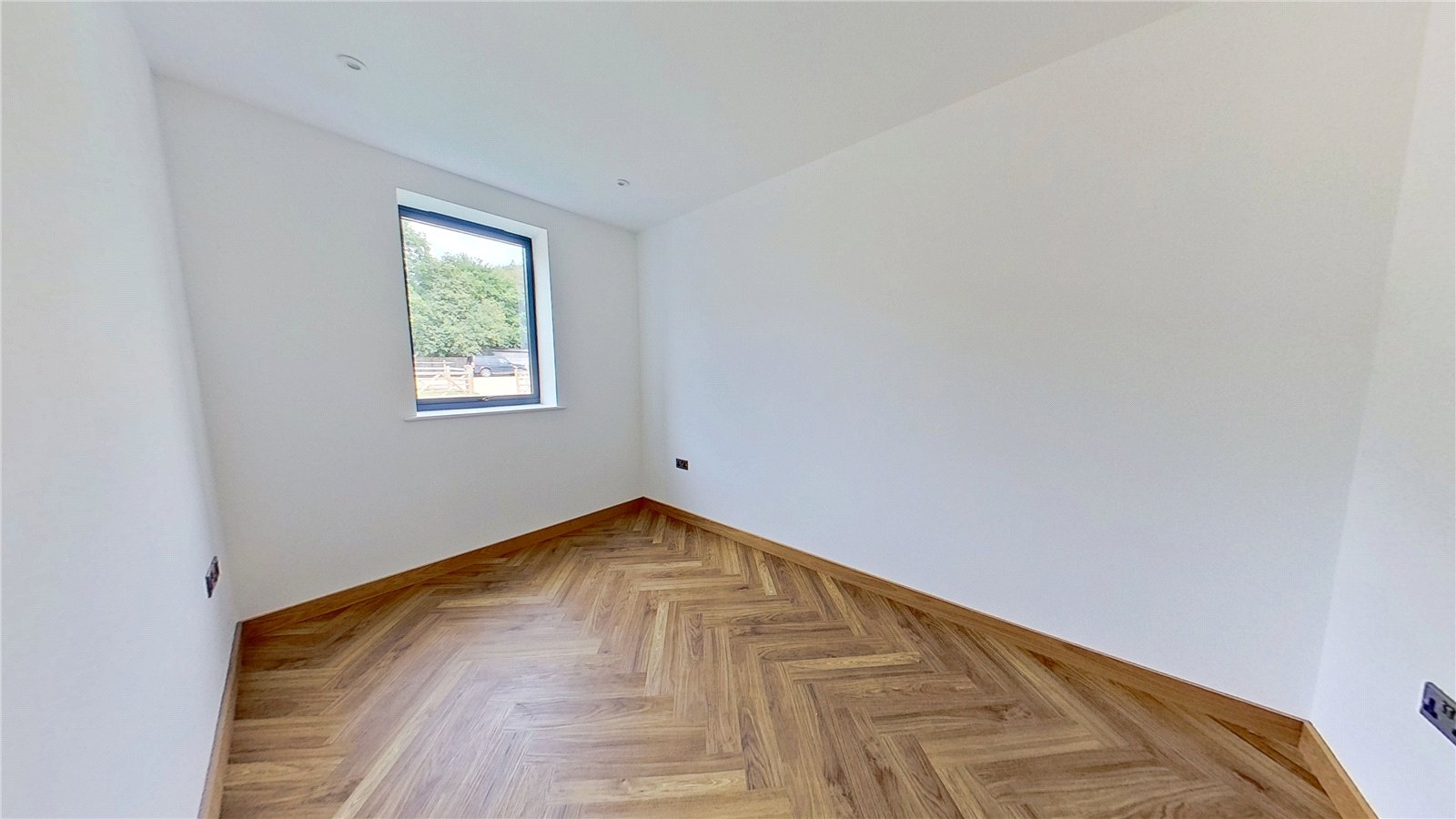 STUDY/BEDROOM 5: A flexible ground floor room that can be used either as a comfortable bedroom or a dedicated study/home office. With a large window allowing in plenty of natural light, herringbone flooring, and neutral décor, it provides a bright and versatile space well suited to modern family living or those working from home.