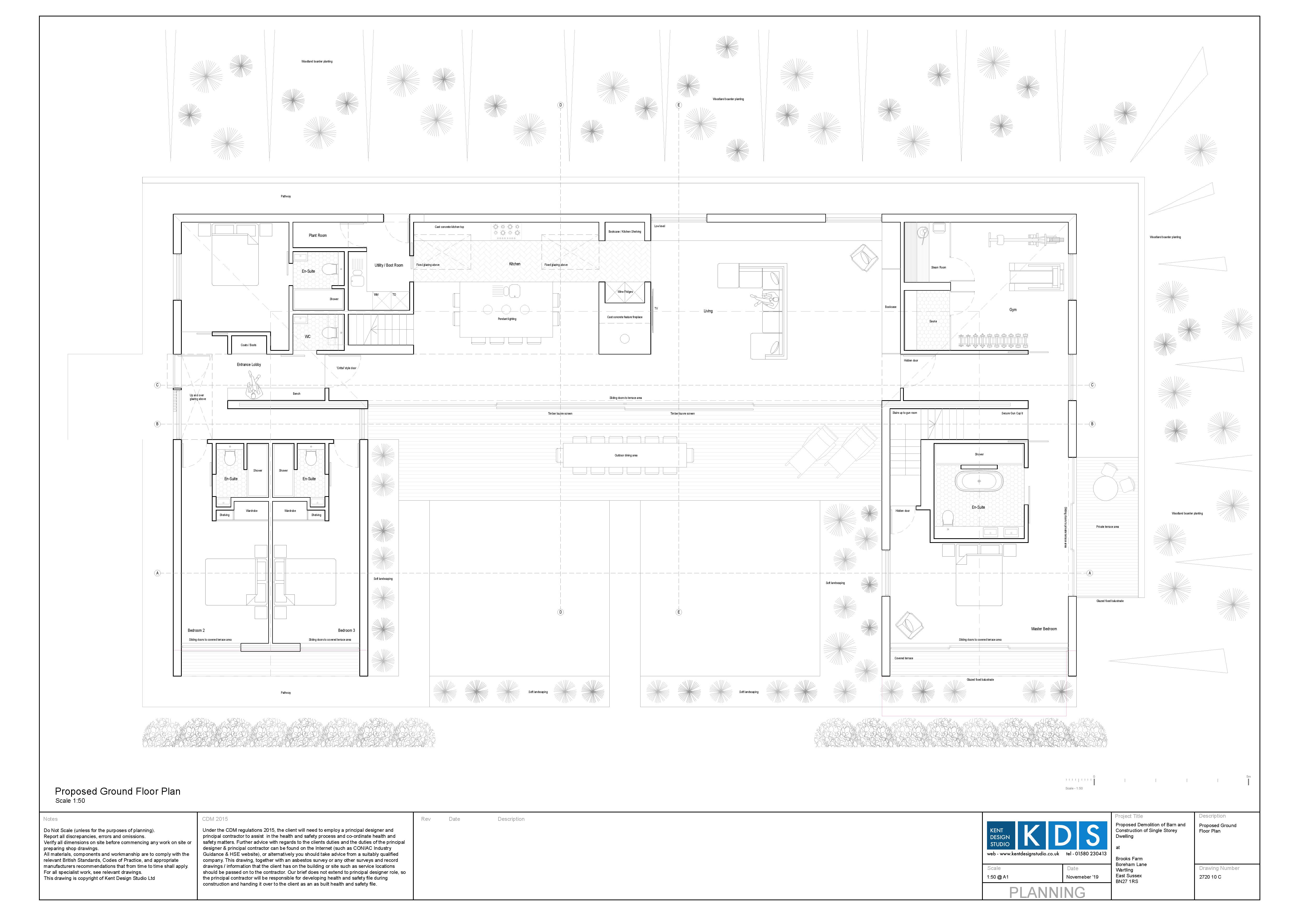 The existing perceived accommodation design will in theory create a wonderful and naturally light spacious four / five double bedroomed bespoke luxurious new grand design imposing contemporary country residence. Each of the four double bedrooms will have ensuite facilities, with the main bedroom suite having a spectacular ensuite bathroom / shower room, as well as a first-floor dressing room above. PLEASE NOTE: Potential bedroom five is currently intended to be a gym.