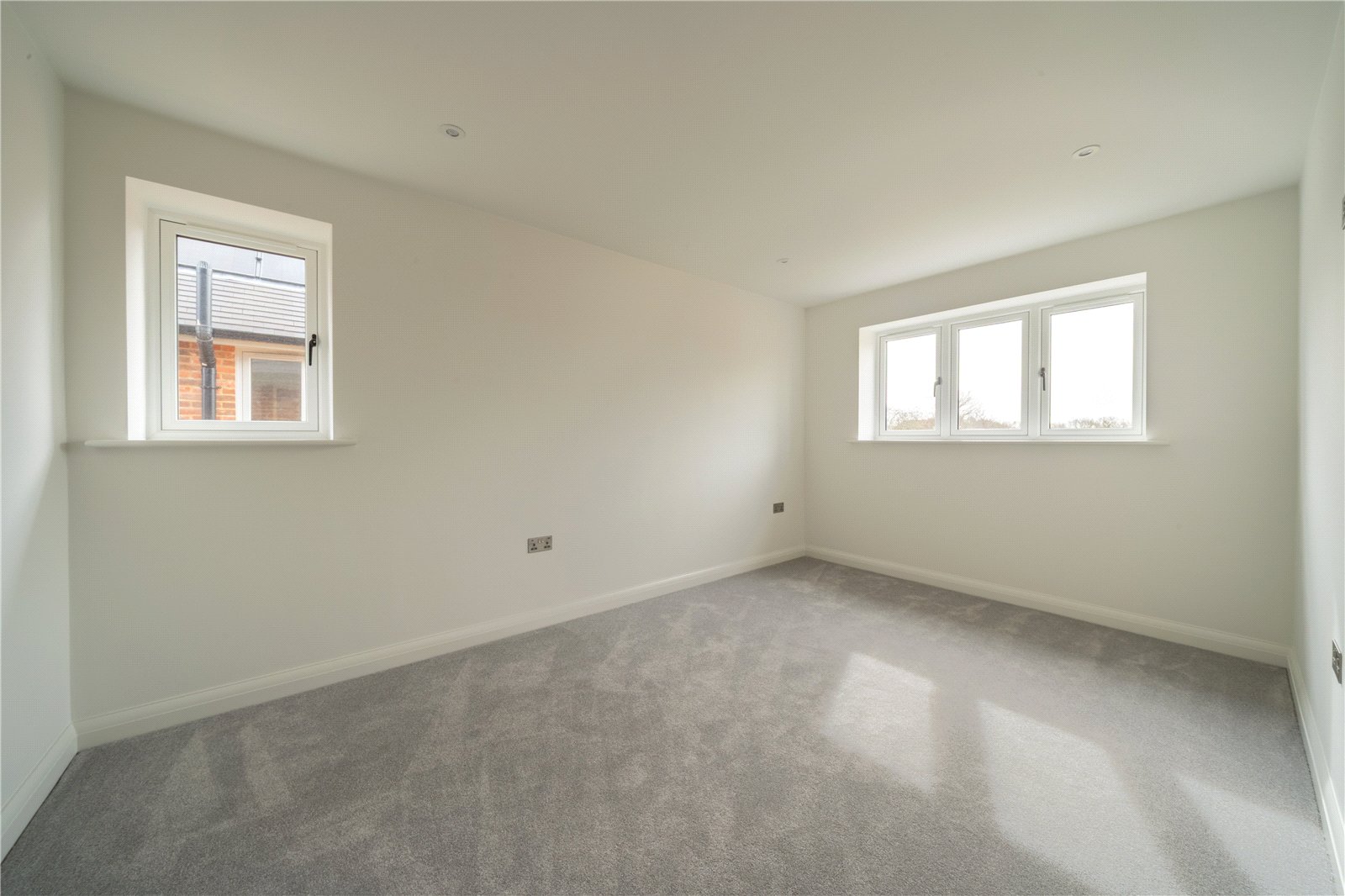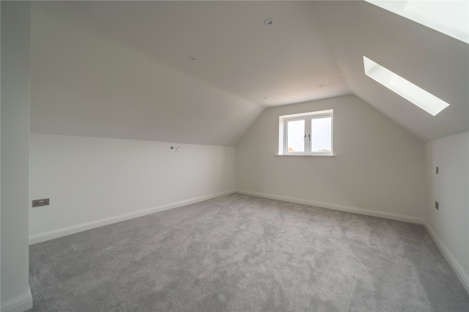 BEDROOM FIVE: A double sized room with carpeted floors, underfloor heating, thermostat control for room, triple glazed window with aspect to rear garden and with views beyond, down lighting, tv wall point, wall sockets incorporating phone charging points.