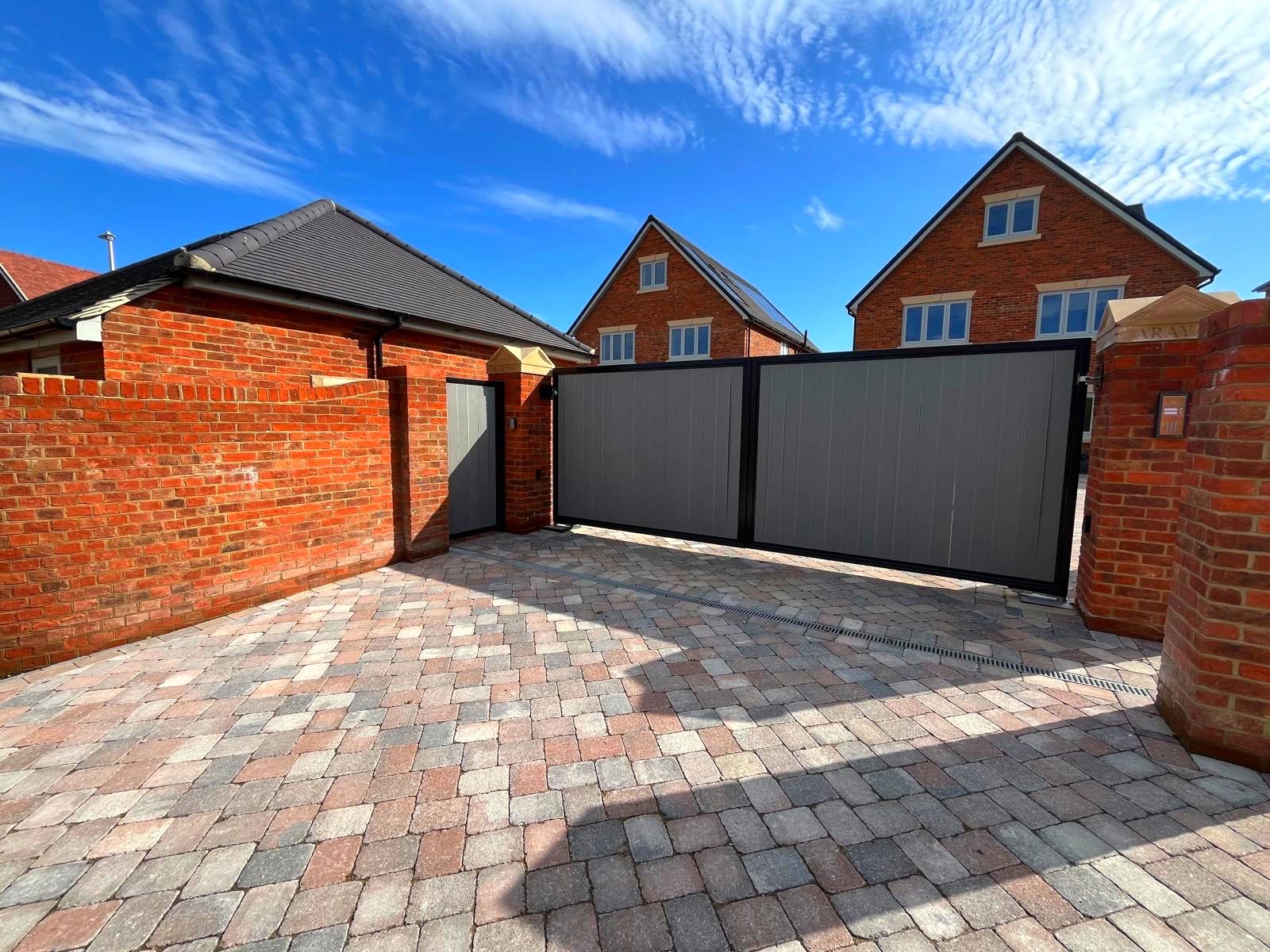 DRIVEWAY: This is approached initially by a set of impressive electric gates. The brick paved driveway then widens dramatically into a large courtyard, with private parking.