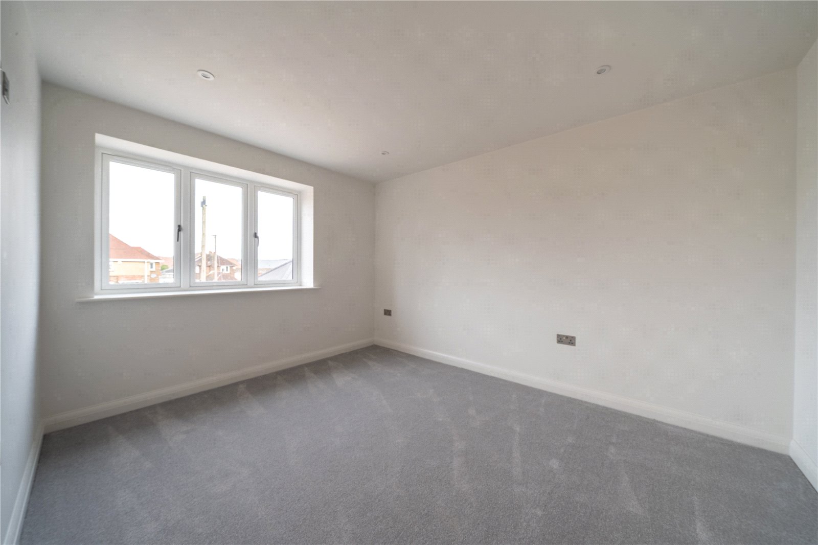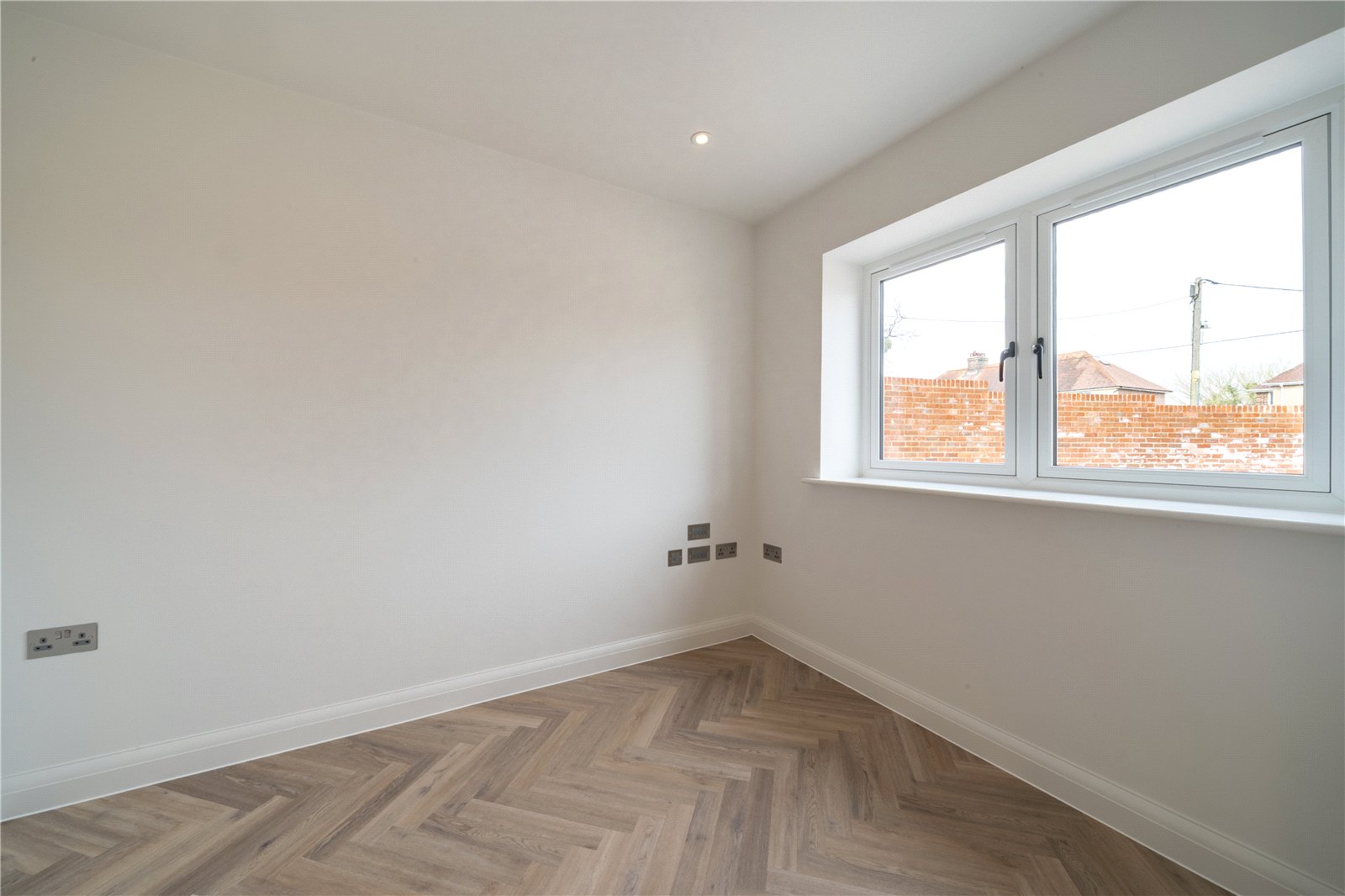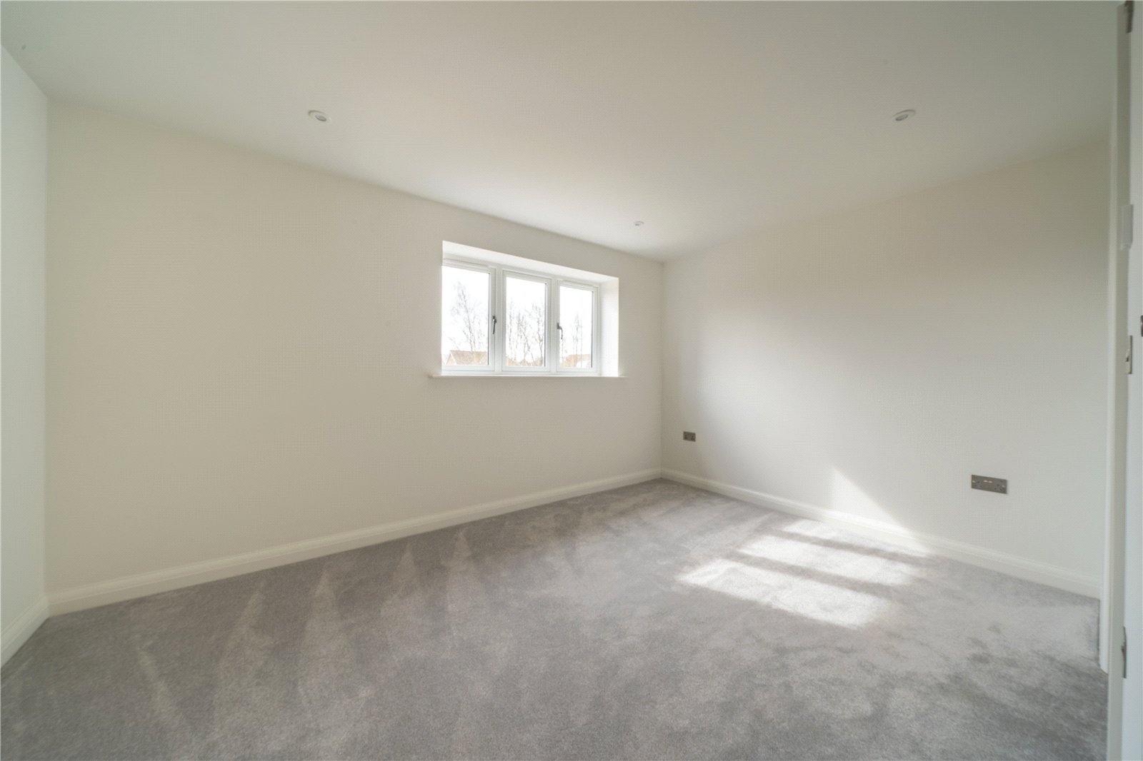 BEDROOM FOUR: A double sized room with carpeted floor, underfloor heating, thermostat room control, wall point for flat screen tv, plug sockets for further phone charging points combined, downlighting, double glazed window with aspect to the front grounds and views beyond.