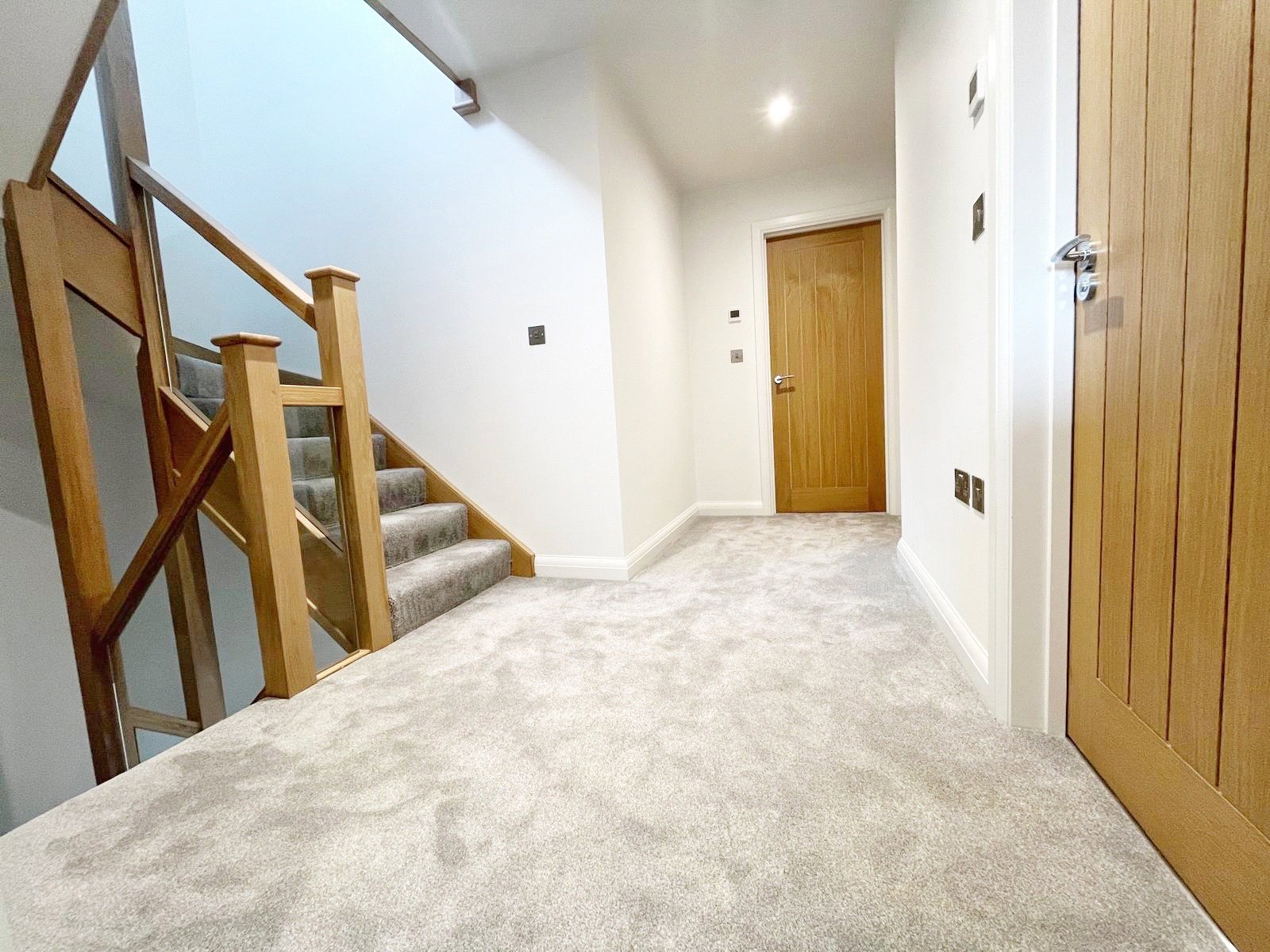 MAIN RECEPTION HALL: Comprising of beautiful Karndean herring bone wood effect floors with further underfloor heating, downlighting, oak door to large under stairs storage area / or extra boot and coats storage cupboard. This naturally bright and spacious reception hall also has individual thermostatically controls to the wall, an impressive feature oak and glazed staircase leading off to the first-floor accommodation, as well as a number of attractive feature oak doors leading off from the reception hall to a downstairs cloakroom, a study, a sitting room / family room and also to a large and impressive open plan kitchen / breakfast room and dining room / lounge.