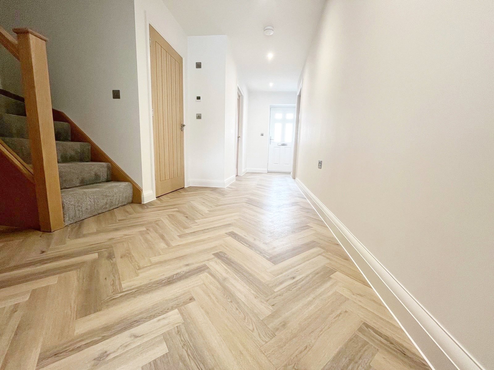 SITTING ROOM: Comprising of down lighting, wall points for flat screen tv and arial point, further plug sockets with charging ports for both android and apple phones, Karndean herringbone wood effect flooring, wall control for individual thermoset heat / temperature setting triple glazed windows with aspect over the front grounds.