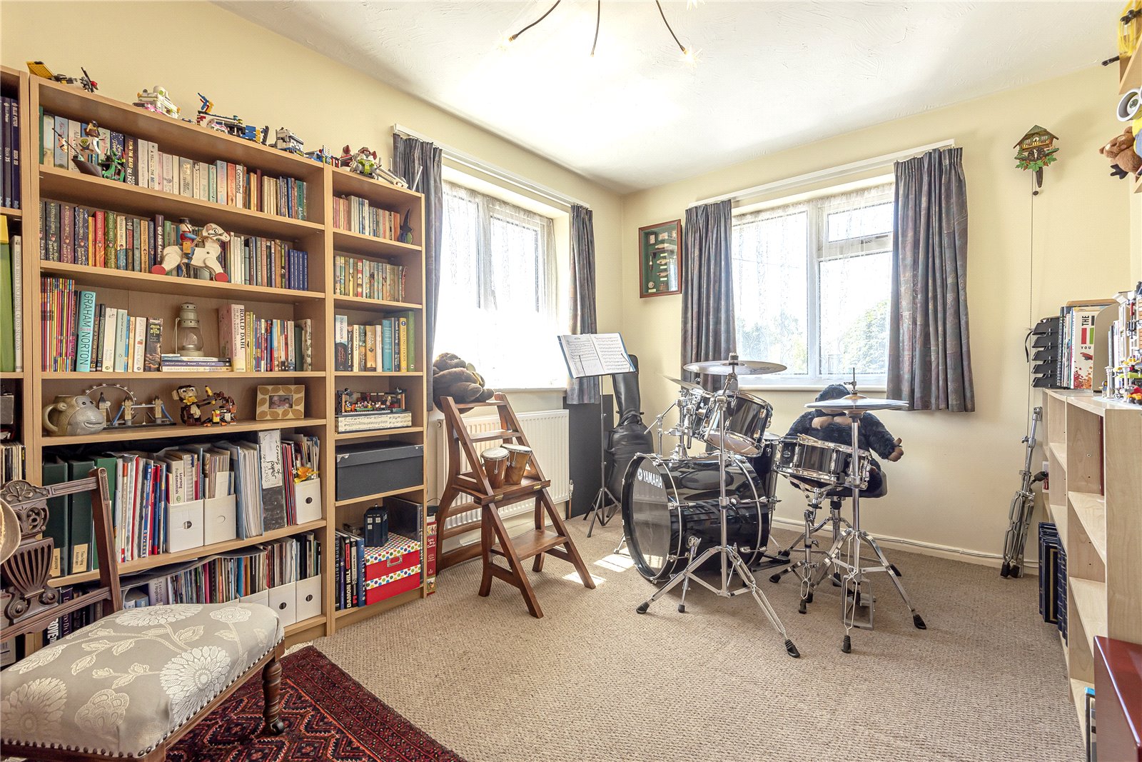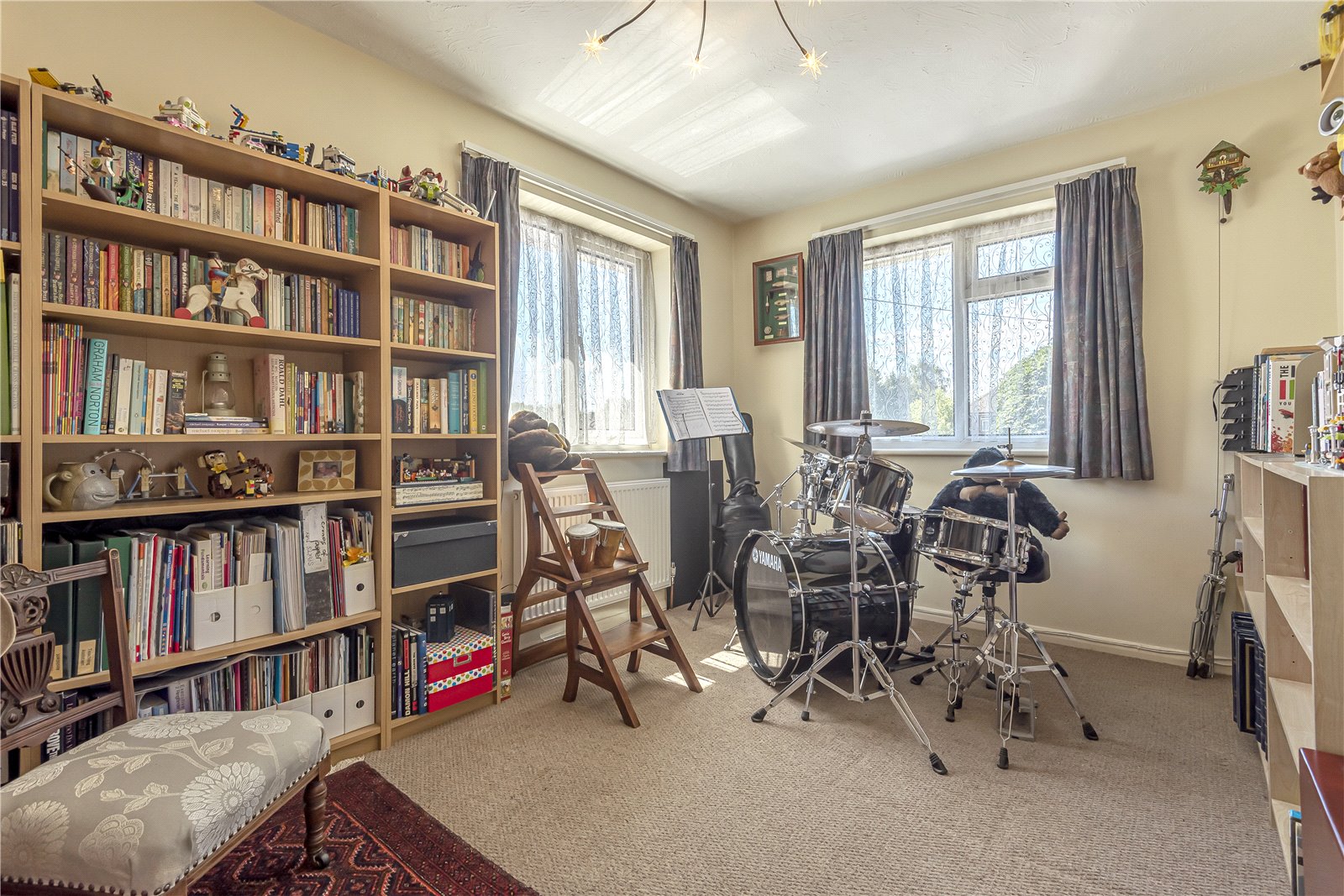 STUDY / BEDROOM FIVE: A double aspect room with radiator, feature ceiling light, double glazed windows overlooking the front garden and driveway.