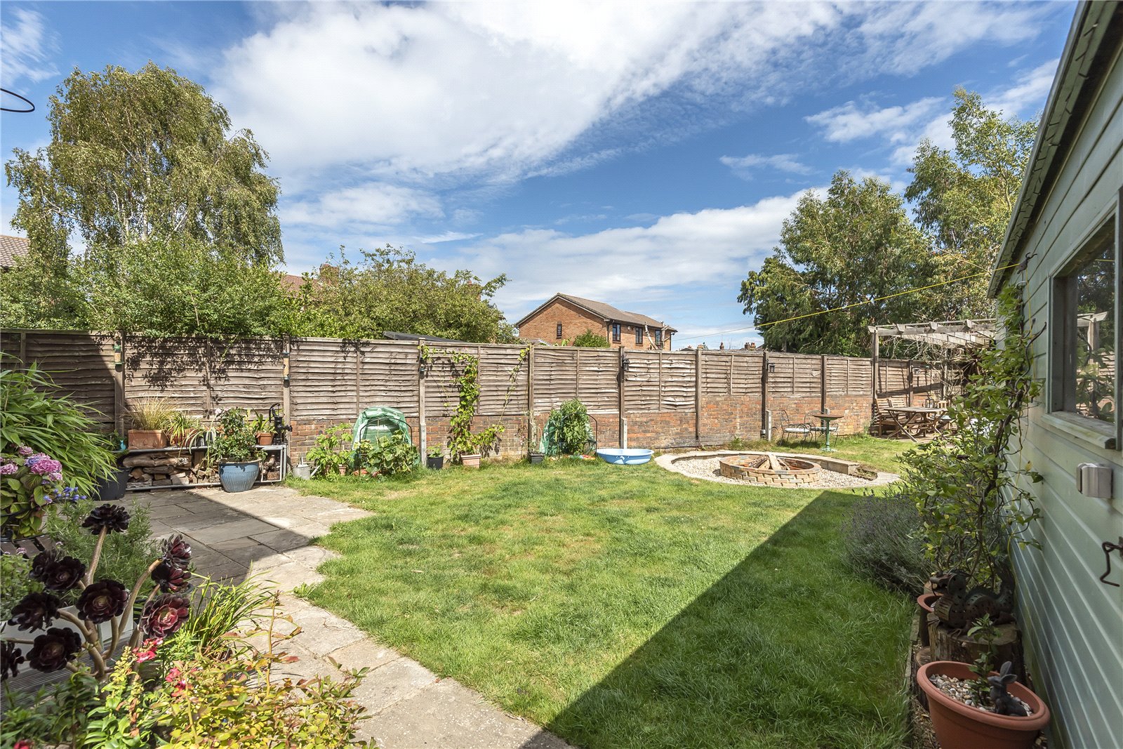 REAR GARDEN: This can be approached from the rear porch, door from the dining room, or by the side access around the house. The garden is mainly laid to level lawn and extends to a maximum of approximately 68 feet. Within the middle lawn area there is a sunken fire / barbecue area with a circular seating area. Beyond to the far pinnacle of the rear garden there is a gazebo with an ornamental pond. A further benefit within the rear garden is a large hobby workshop with electricity and 3 storage sheds at the side entrance.