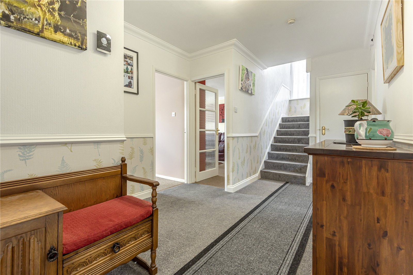 RECEPTION HALL: With dado rails, ceiling light, deep storage cupboard housing meters, radiator, SMART heating control thermostat, additional extensive under stairs storage including under the mezzanine area. Door to cloakroom.