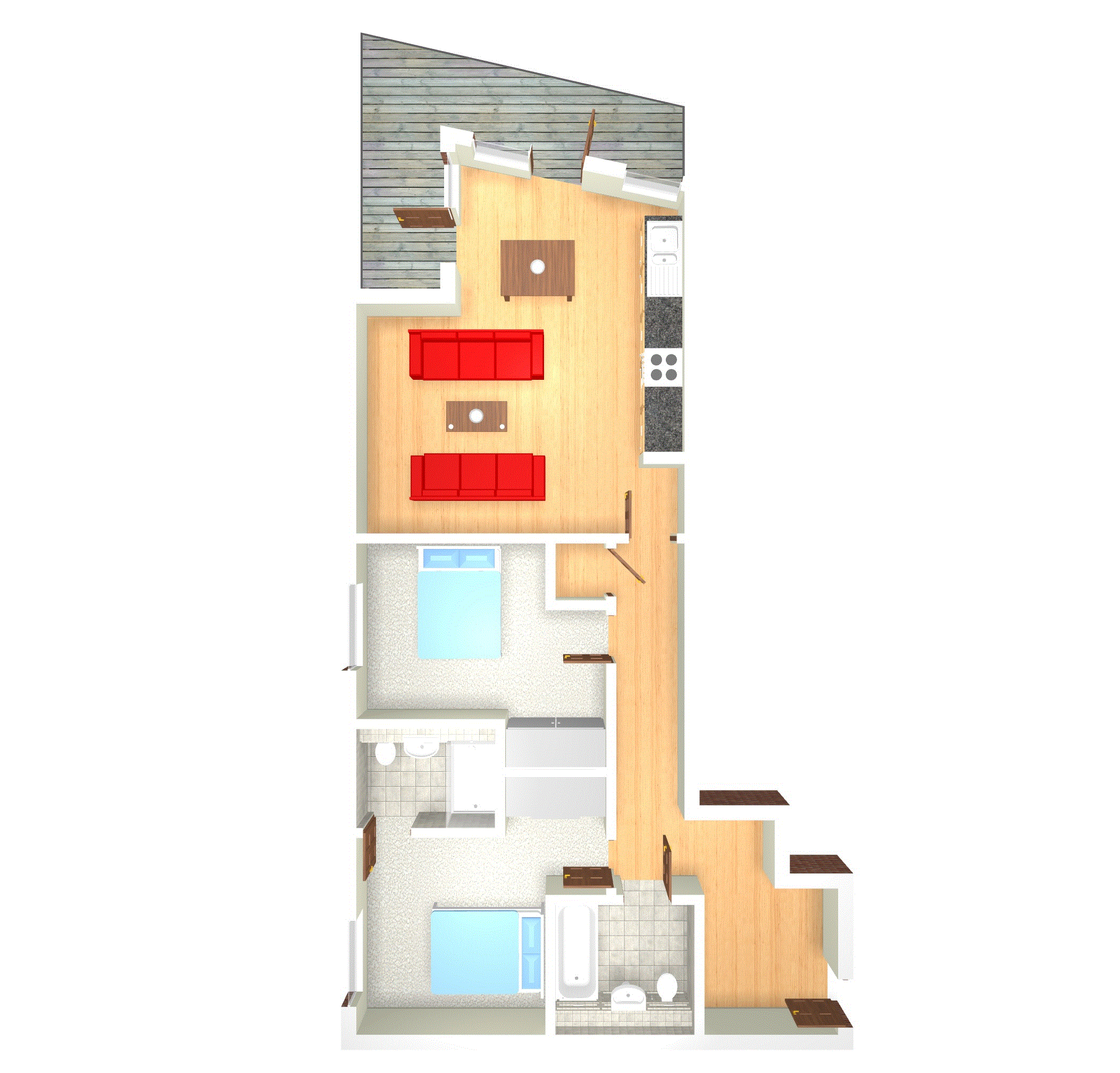 - Private large two-sided balcony