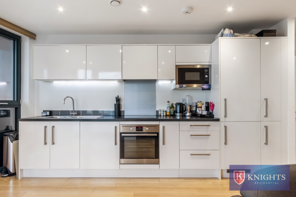 - Open plan living space with modern fitted kitchen