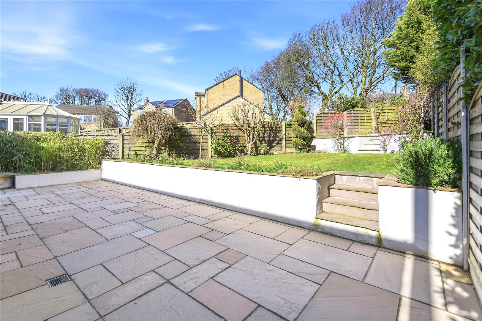 - Private tiered rear garden with Indian stone terraces