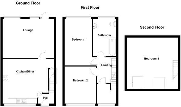 Perfectly suited to a young or growing family, the accommodation briefly comprises: an entrance hall, a generous dining kitchen, and a comfortable lounge to the ground floor. The first floor offers two well-sized double bedrooms and the house bathroom, while the second floor hosts a further spacious double bedroom.