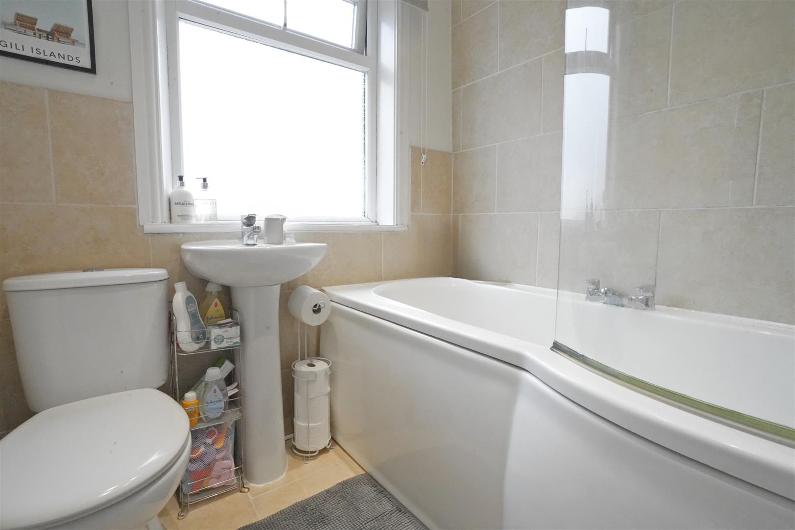 Bathroom - Wash hand basin. Low flush W.C. Bath with mixer taps and shower above. Partially tiled. Chrome towel radiator. Extractor fan. UPVC double glazed window to rear elevation.