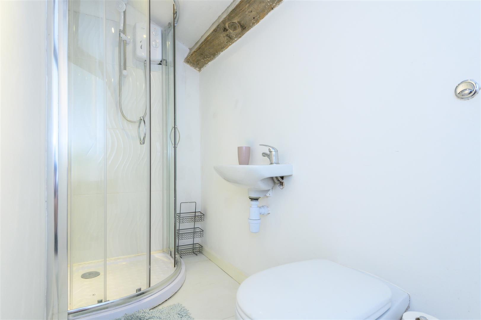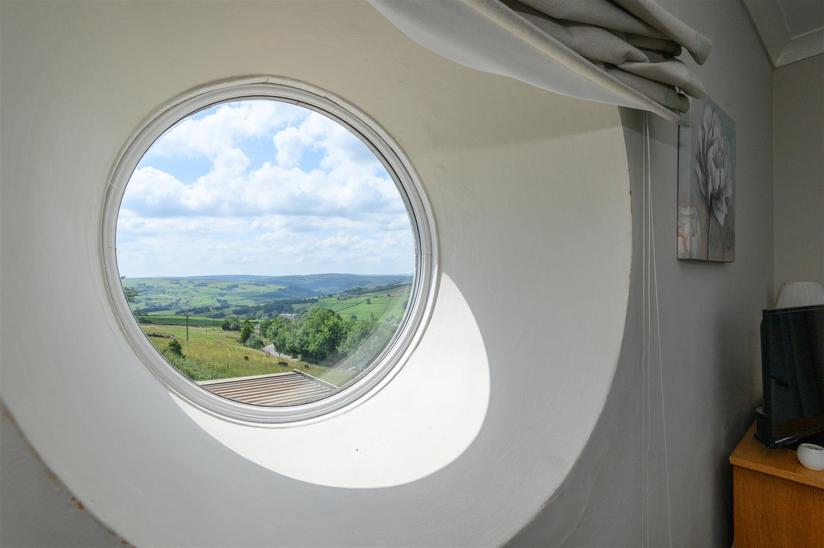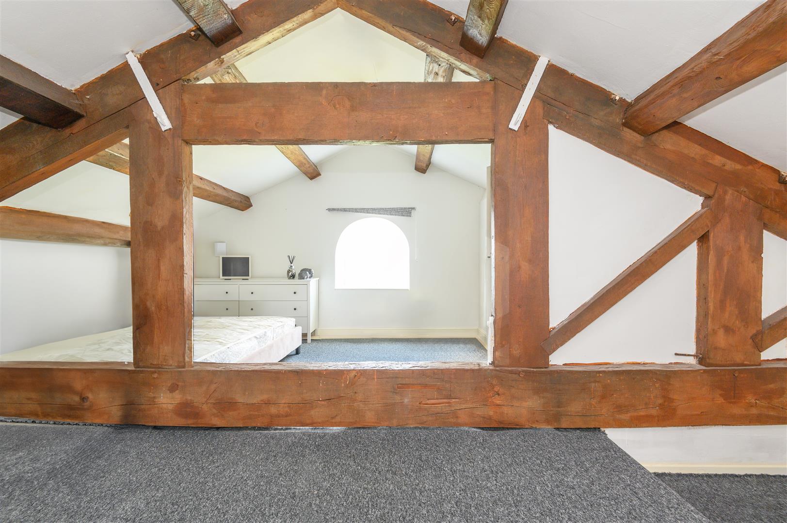 - Feature box room with exposed stone and arched window