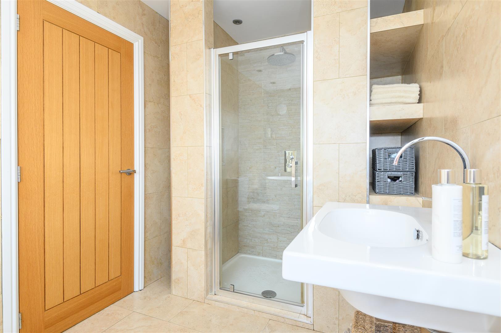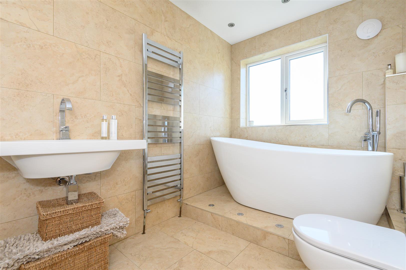 - Spa-style bathroom with freestanding bath and rainfall shower