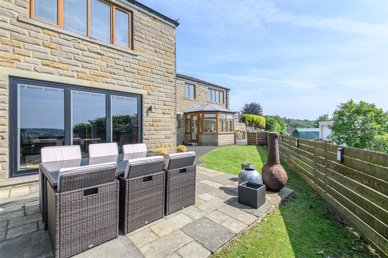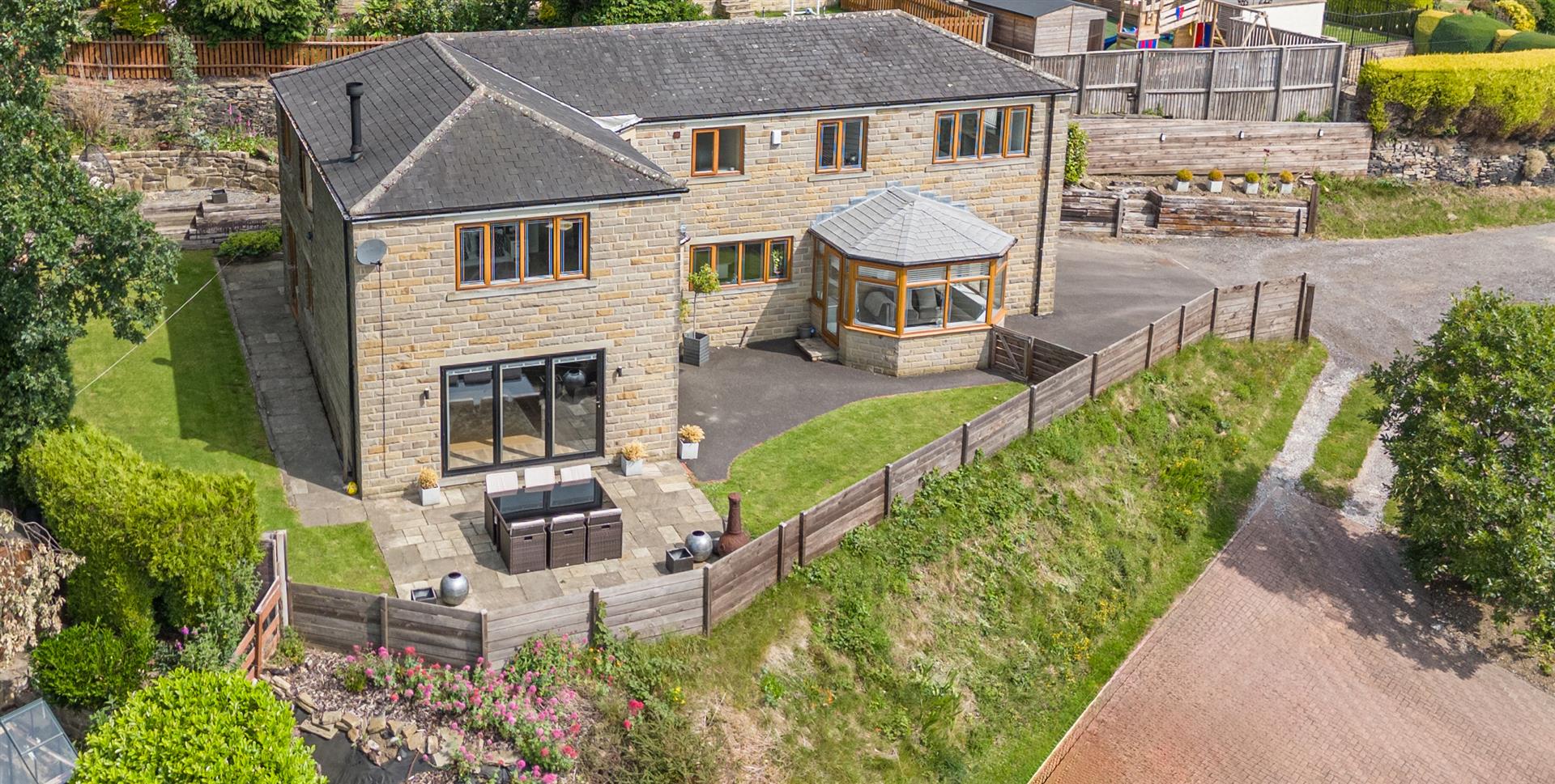 - Landscaped gardens, decking, lawn and seating areas front and back
