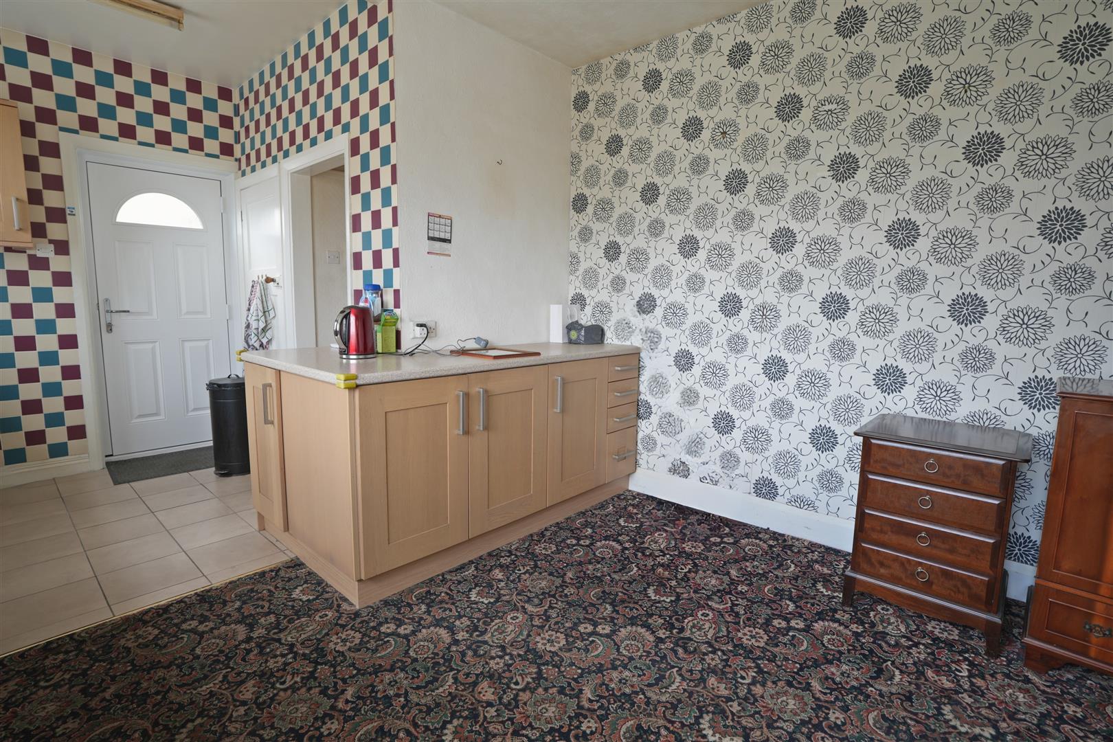 Dining Kitchen - 3.639 x 5.578 max (11'11" x 18'3" max) - Fitted kitchen with wall and base units. Stainless steel one bowl sink. Dual fuel Range cooker. Plumbing for washing machine. Integrated fridge / freezer. Wall mounted gas heater. Composite door to side elevation. Two UPVC double glazed windows to rear elevation.