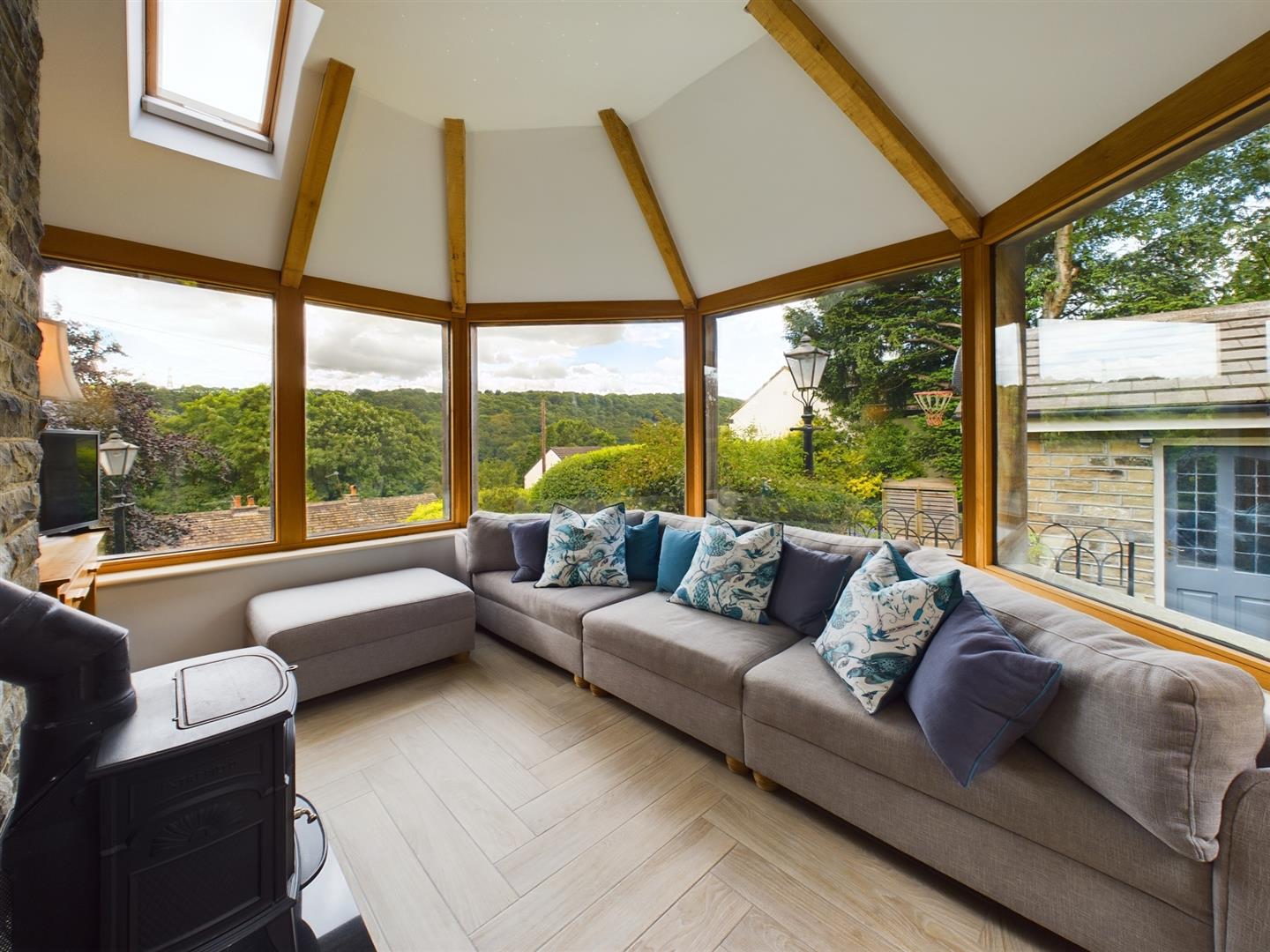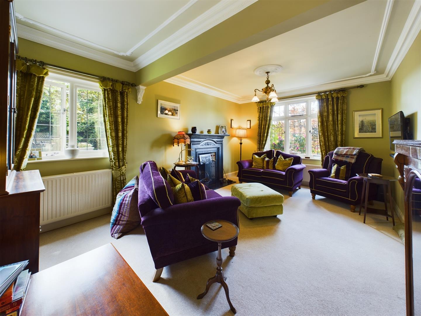 - Spacious lounge with dual-aspect windows and open fireplace