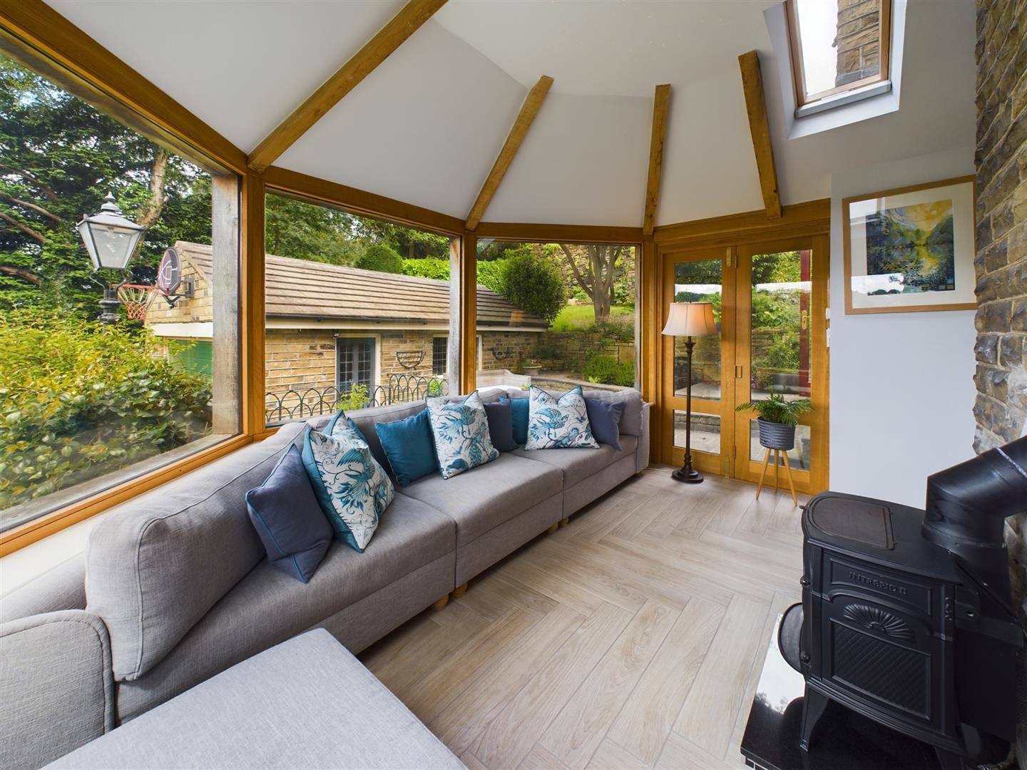 - Light-filled conservatory with garden access and gas fire