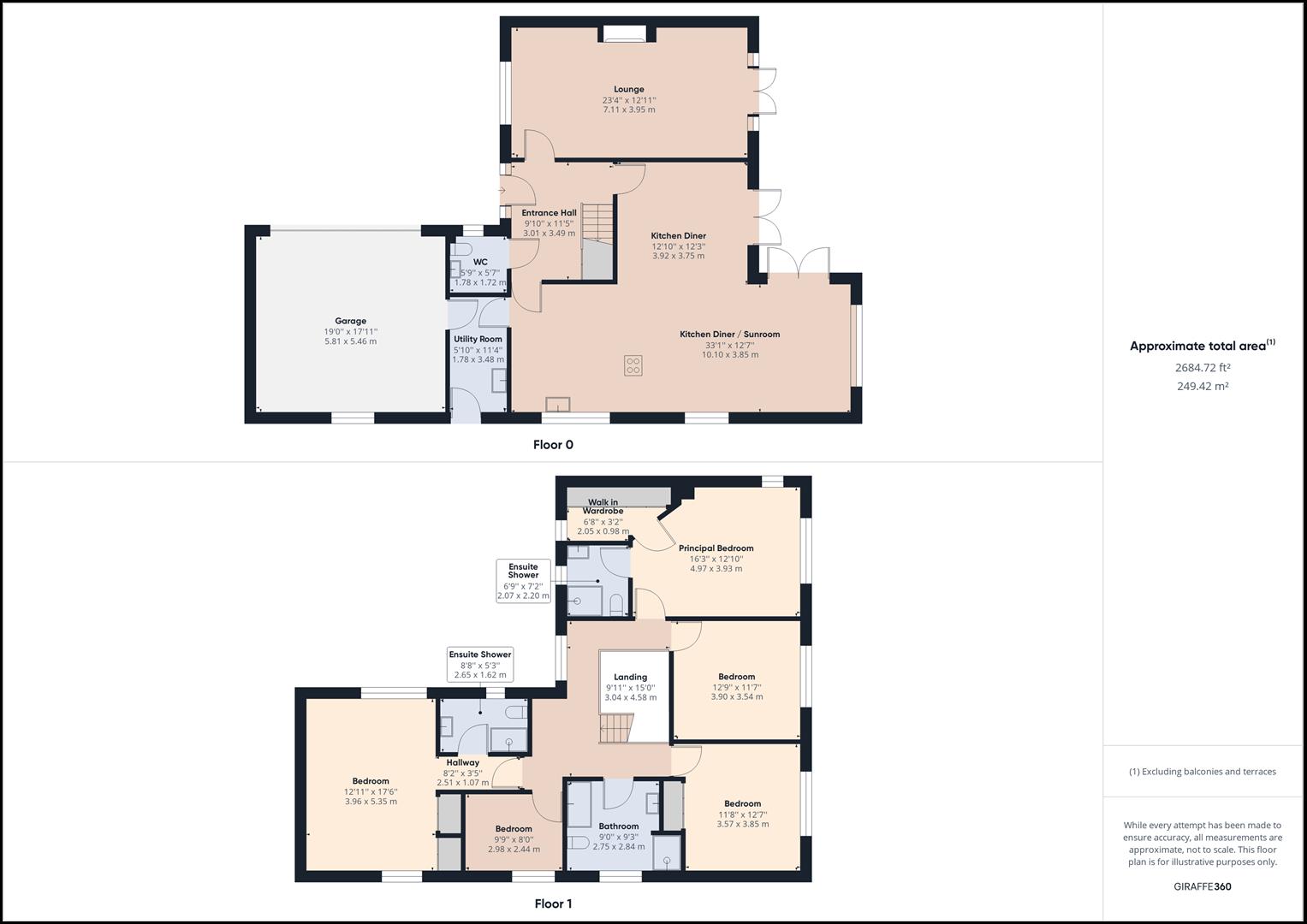 To the first-floor, principal bedroom enjoying walk-in wardrobe space and an en-suite shower room, second bedroom again with an en-suite shower room, three further double bedrooms and the house bathroom.