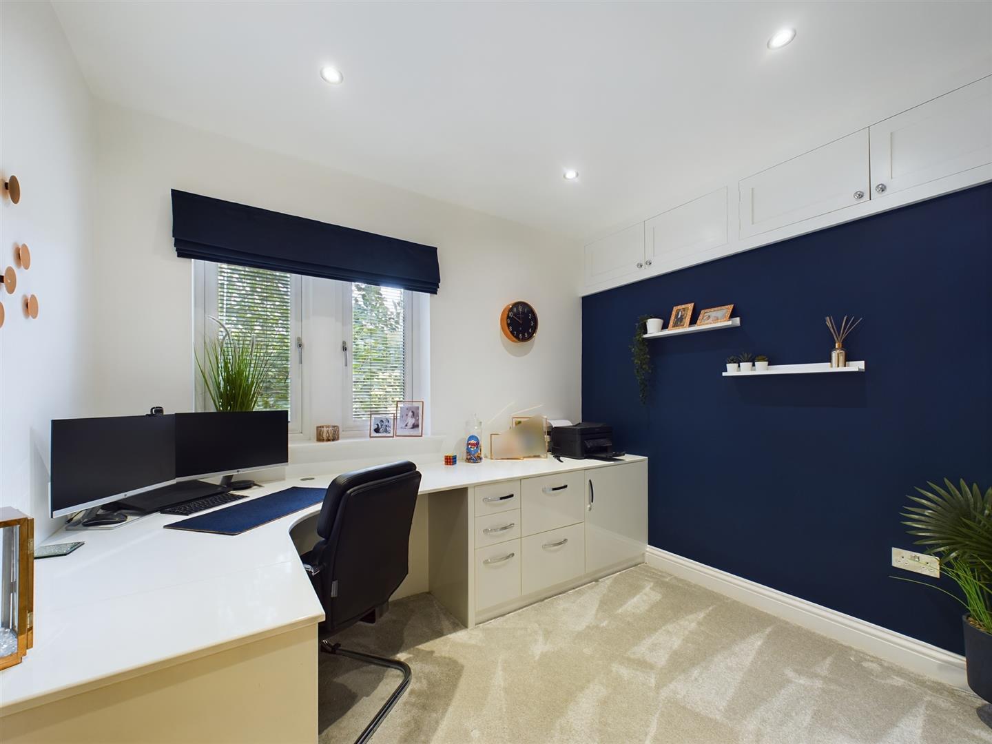 The fifth bedroom is currently being used as a study. Again, benefitting from carpeted flooring, spotlights to the ceiling and a window to the side elevation as well as fitted office furniture.