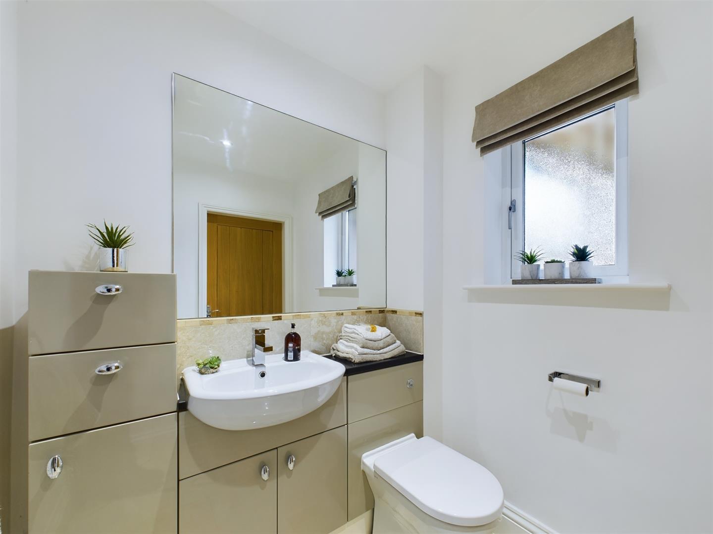 Leading from the kitchen diner and into the utility room this useful space has smart motion sensor lighting and enjoys a range of wall and base units, additional worksurface space and an undermounted composite sink with a mixer tap. Integrated appliances within the utility room include a washing machine and a condensing dryer. An external door gives access to the side of the property with an internal door leading through into the integral garage.