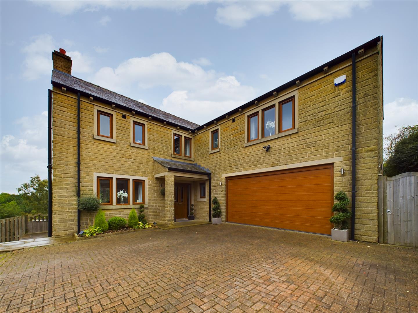 Externally, property has block paved hardstanding parking area to the front and side, integrated oversize garage, whilst to the rear a stone patio entertaining area overlooks the sizeable lawned garden and intern an area of private woodland where local wildlife including deer's can often be seen.