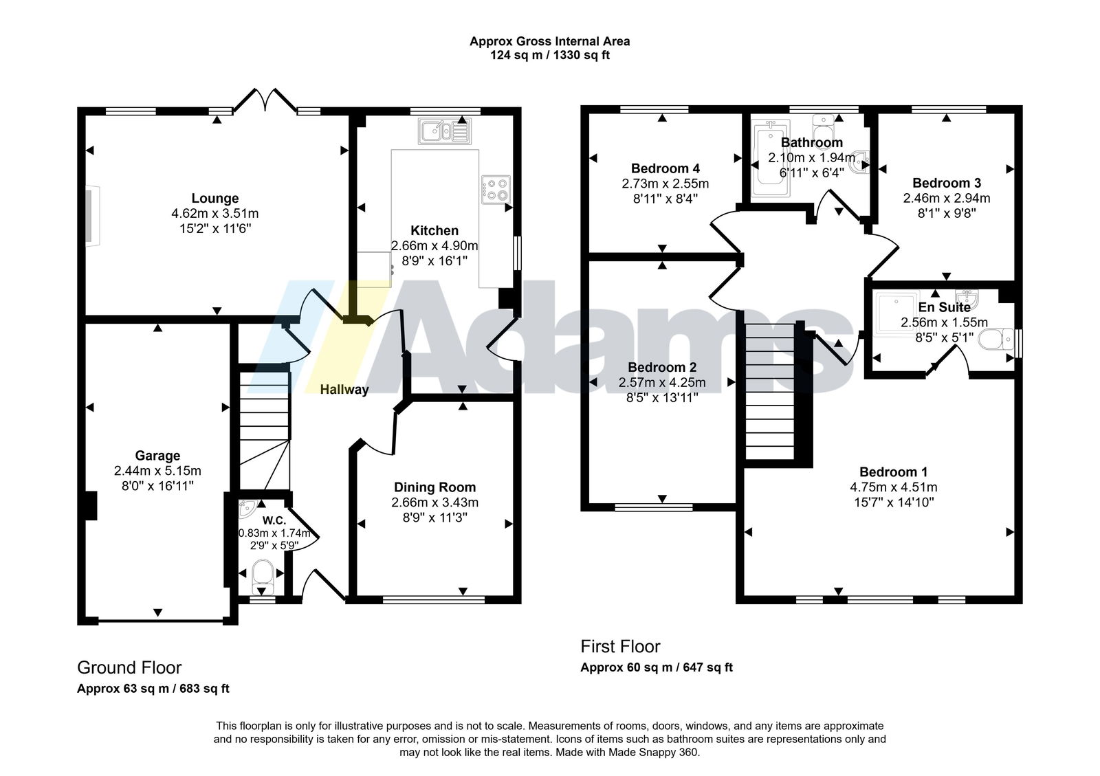 Upstairs, the first floor offers four well-proportioned bedrooms, including a master bedroom with ensuite shower room, along with a contemporary family bathroom.