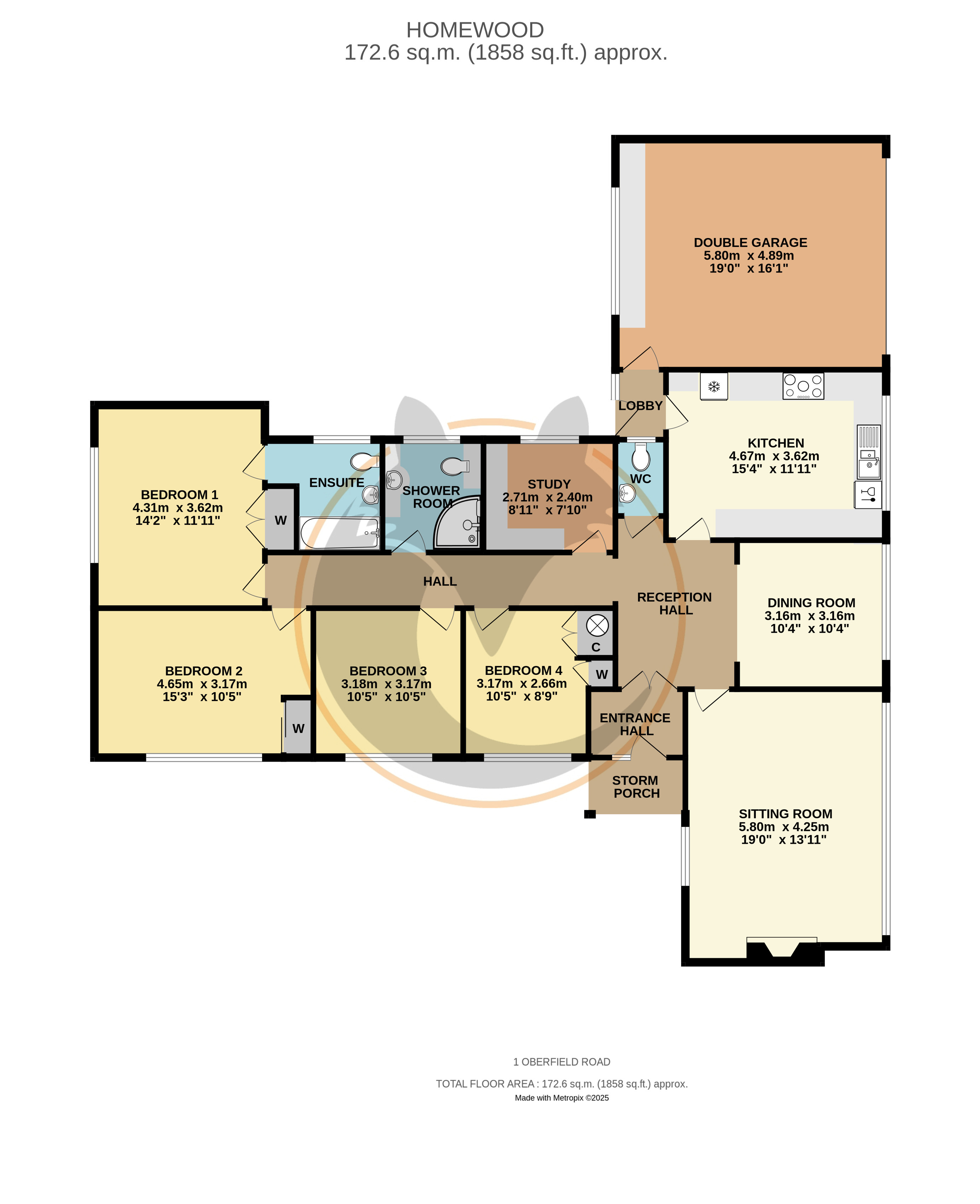 The bedroom accommodation is arranged along an inner hallway and comprises four double bedrooms three of them benefitting from fitted storage. The principal bedroom benefits from a good range of built in wardrobes and an ensuite bathroom, while the remaining bedrooms are served by a well-proportioned shower room