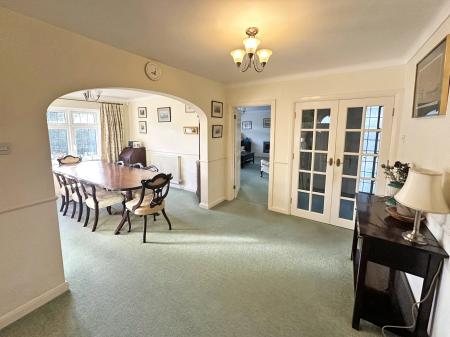 A storm porch opens into a welcoming entrance hall, leading through to a central reception hall that forms the hub of the home and provides access to the principal living spaces.