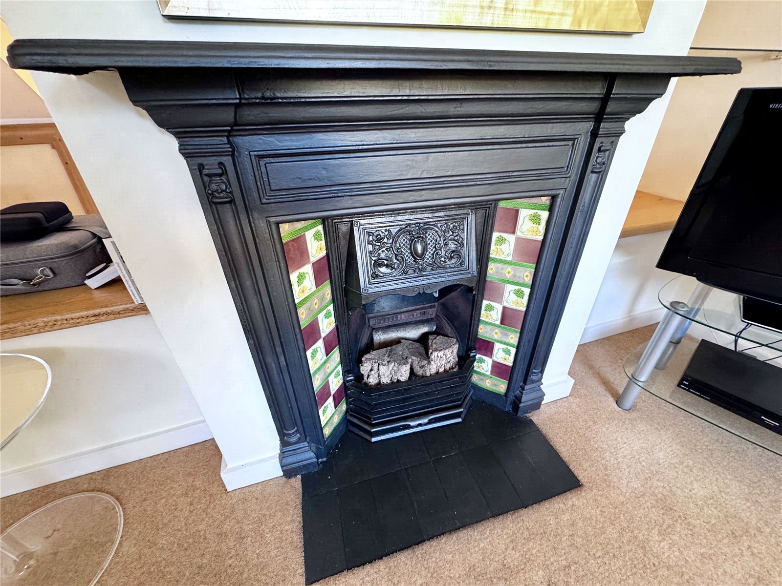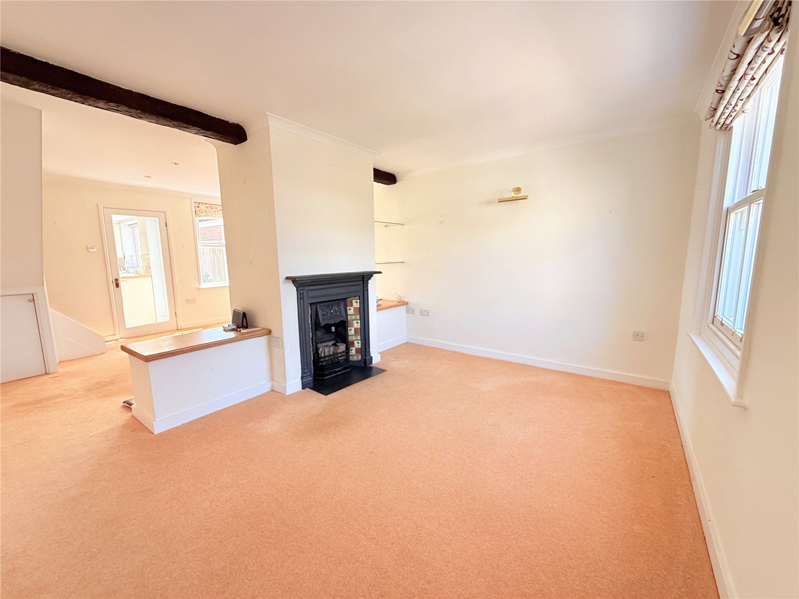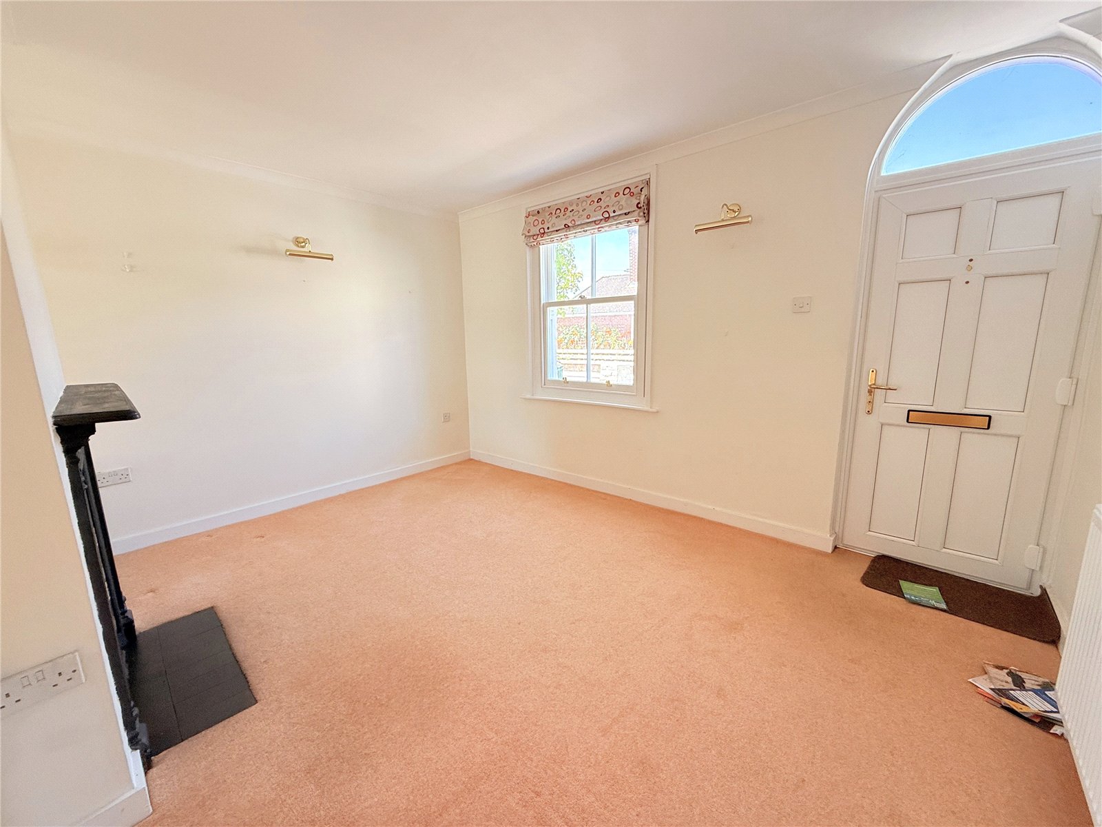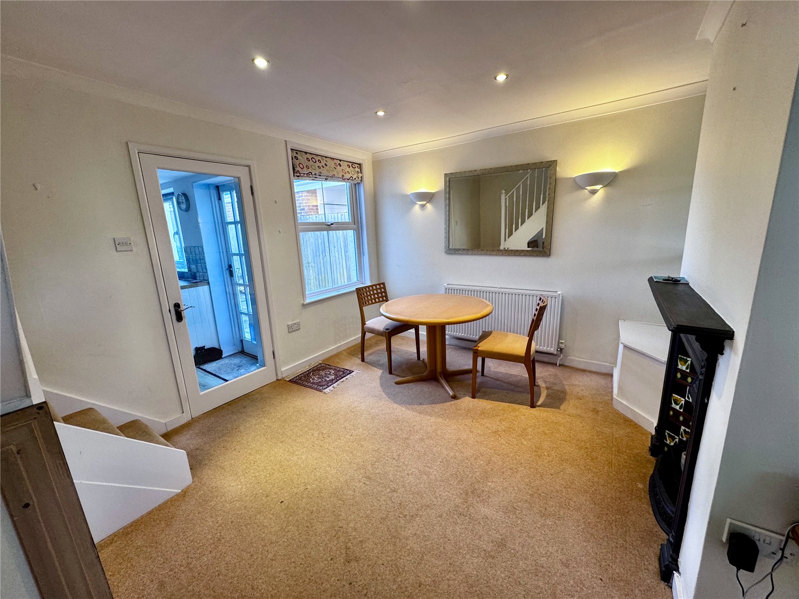 Period fireplace, radiator, stairs to first floor, door to