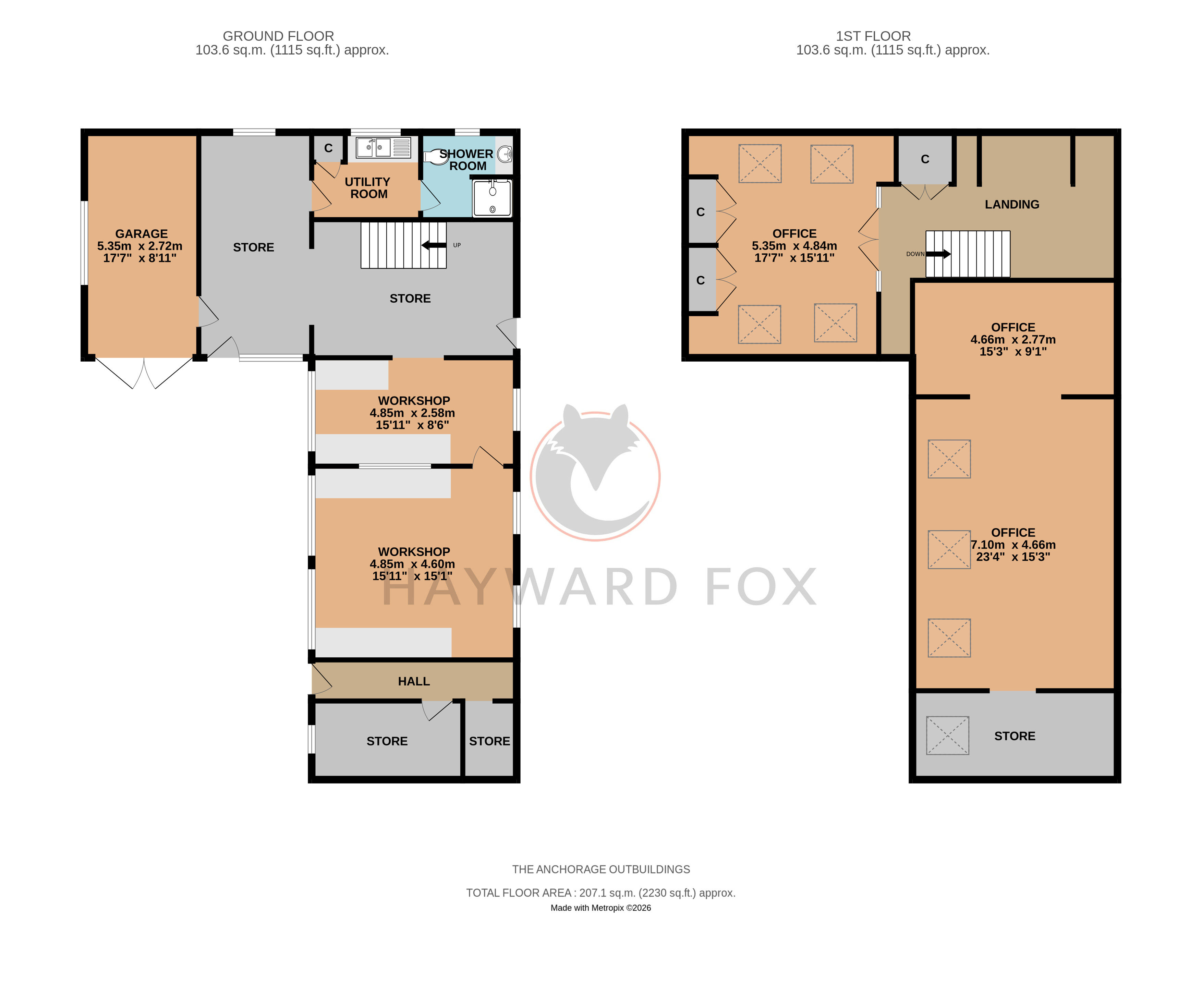 Adjoining the rear of the main house is the extensive two-storey outbuilding, currently arranged as a series of workshops and office spaces extending to 2230 sq ft. With its substantial footprint and adaptable layout, it presents an excellent opportunity for conversion to further accommodation or commercial use, subject to the necessary planning permissions.
