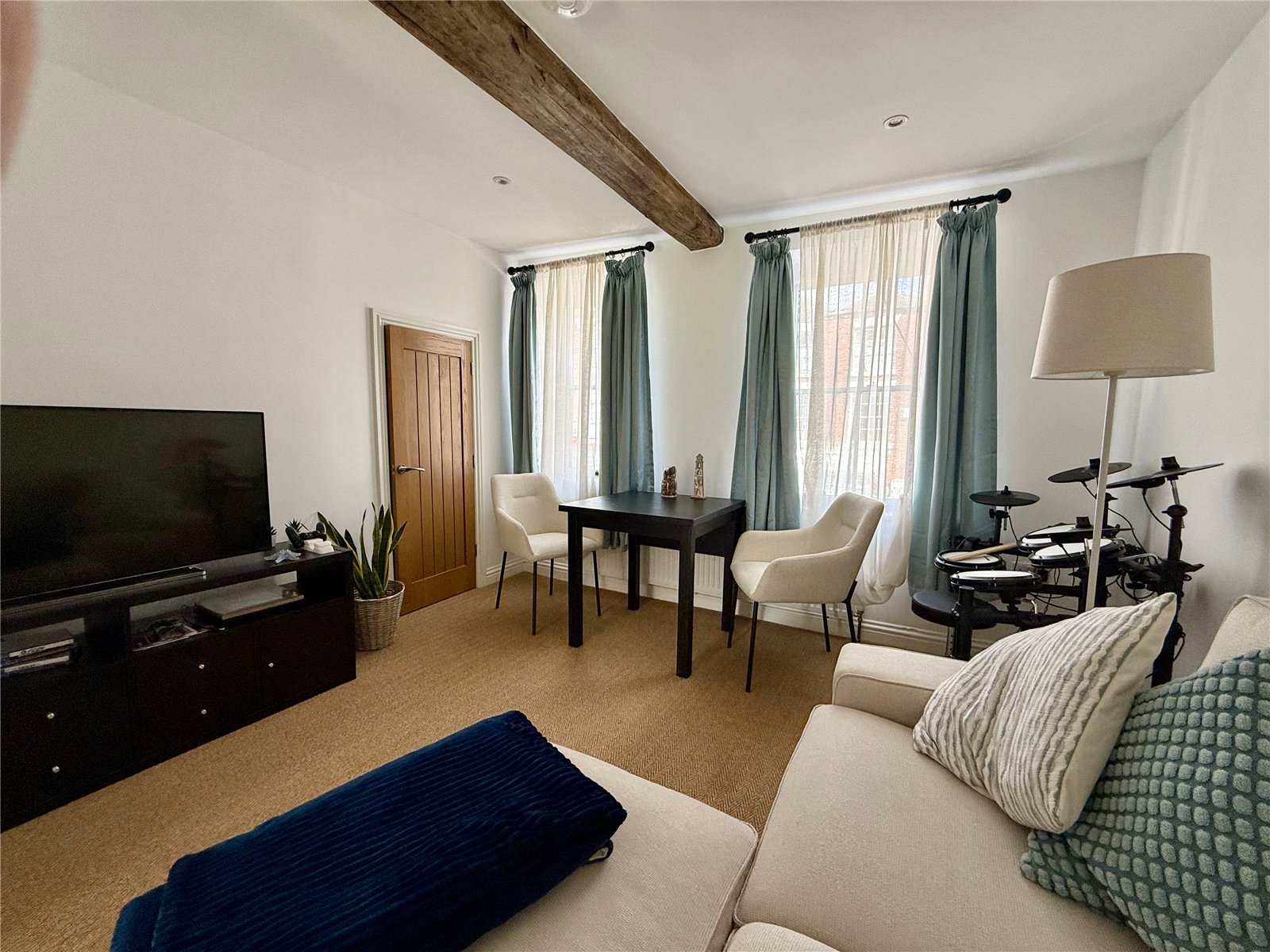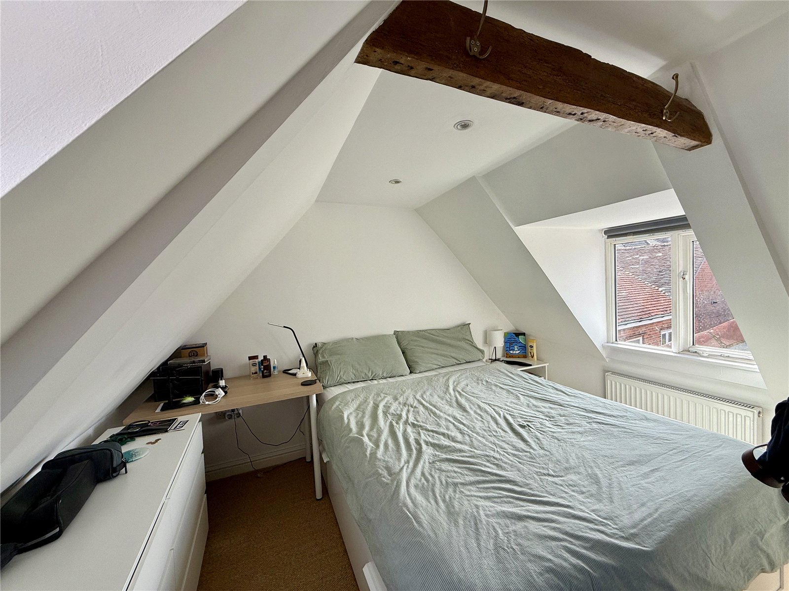 Overlooking the High Street, exposed beam work, radiator, walk-in storage cupboard.